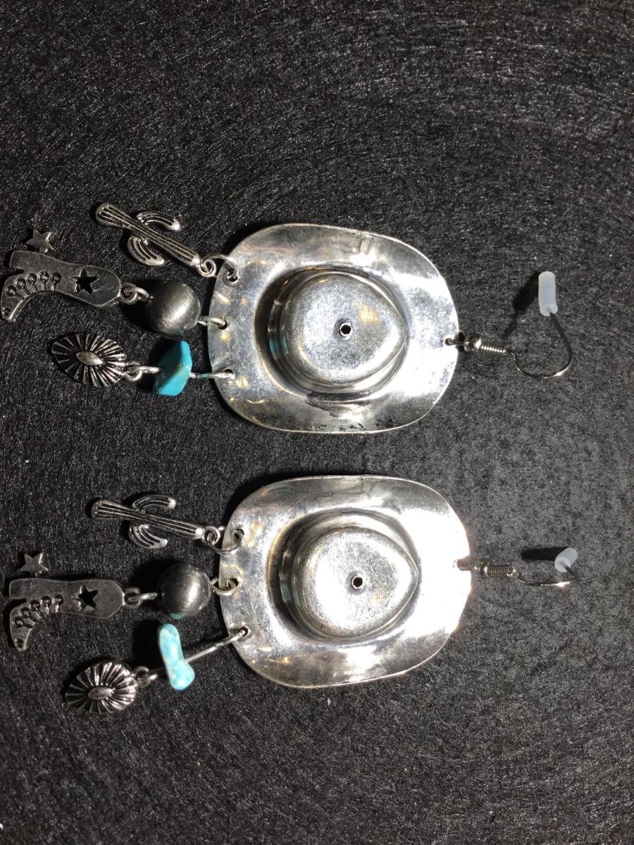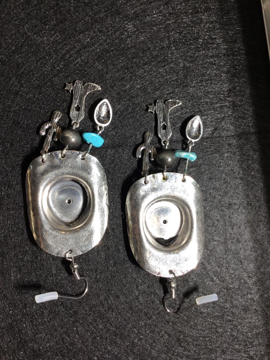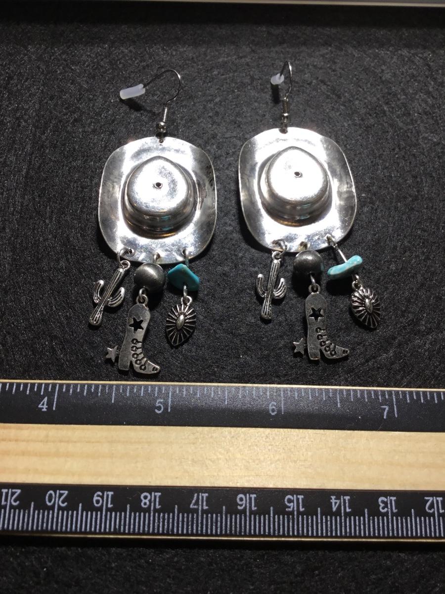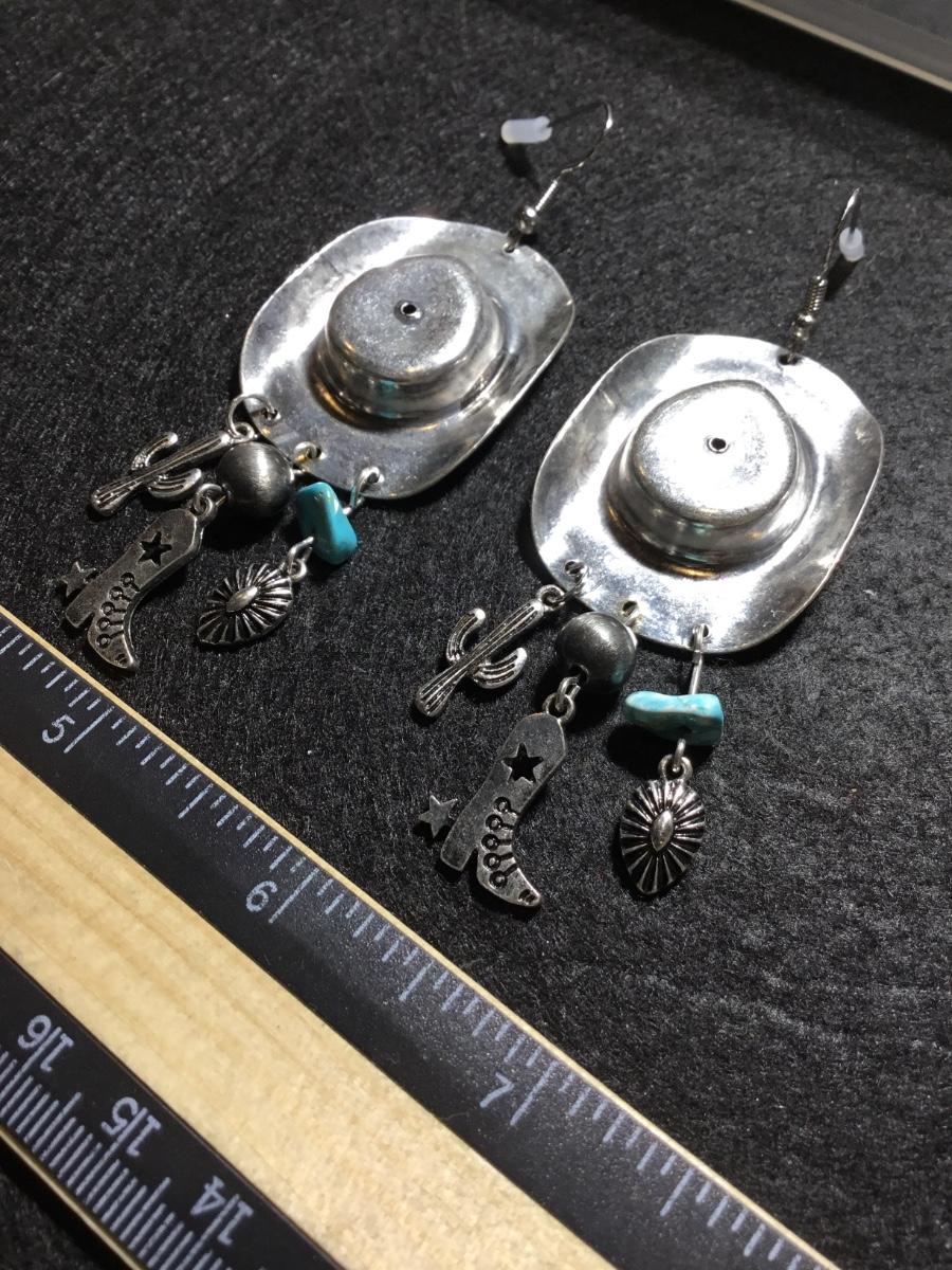 Silver tone boho western rodeo dangle statement super cute earrings