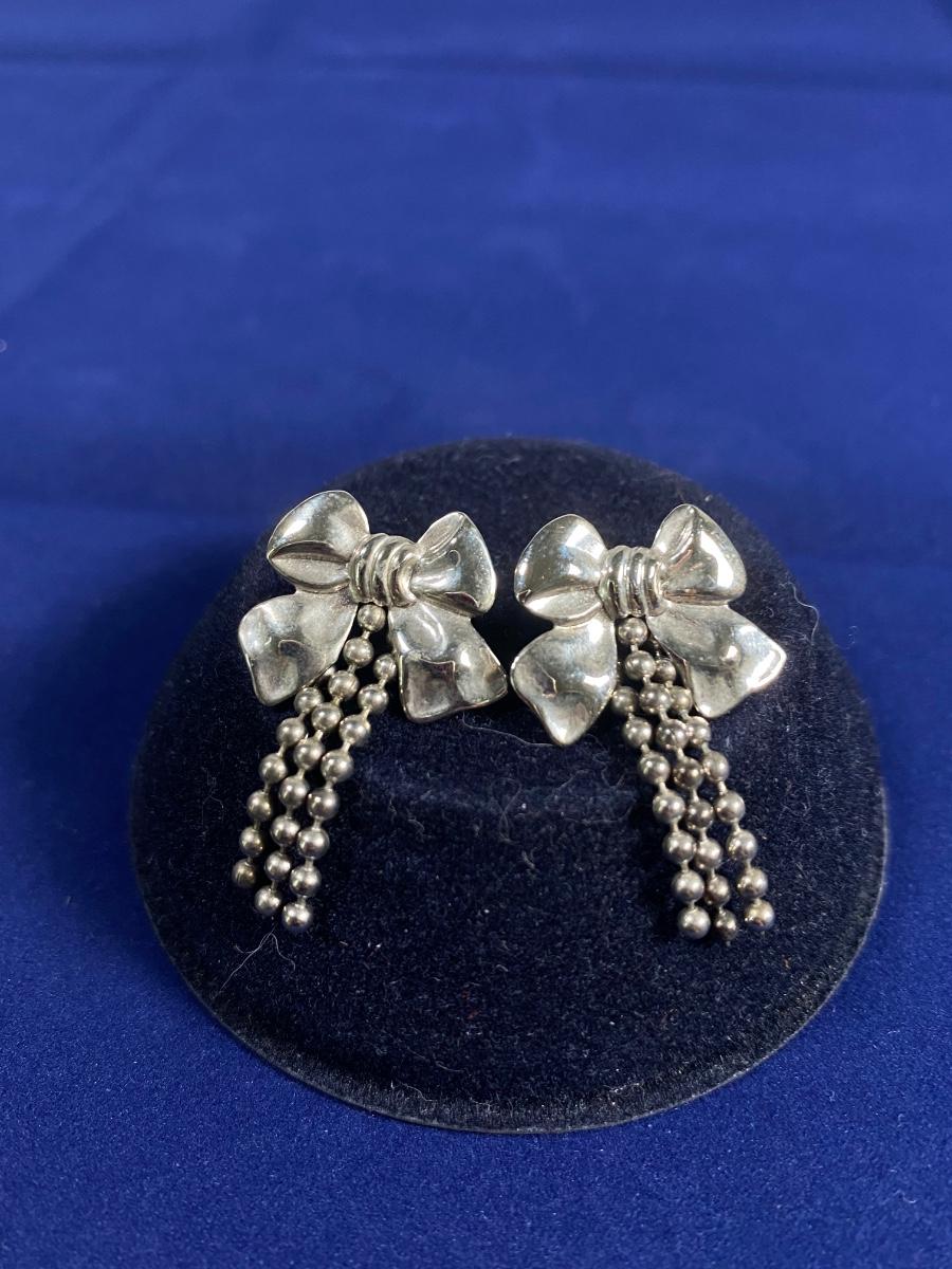 Silver Tone Bow Earrings for Pierced Ears. Good condition.