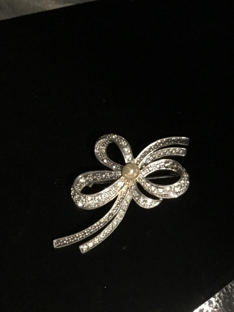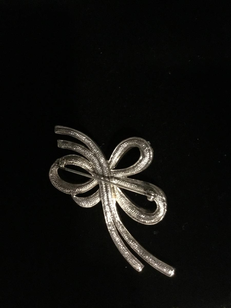 Silver tone bow pin