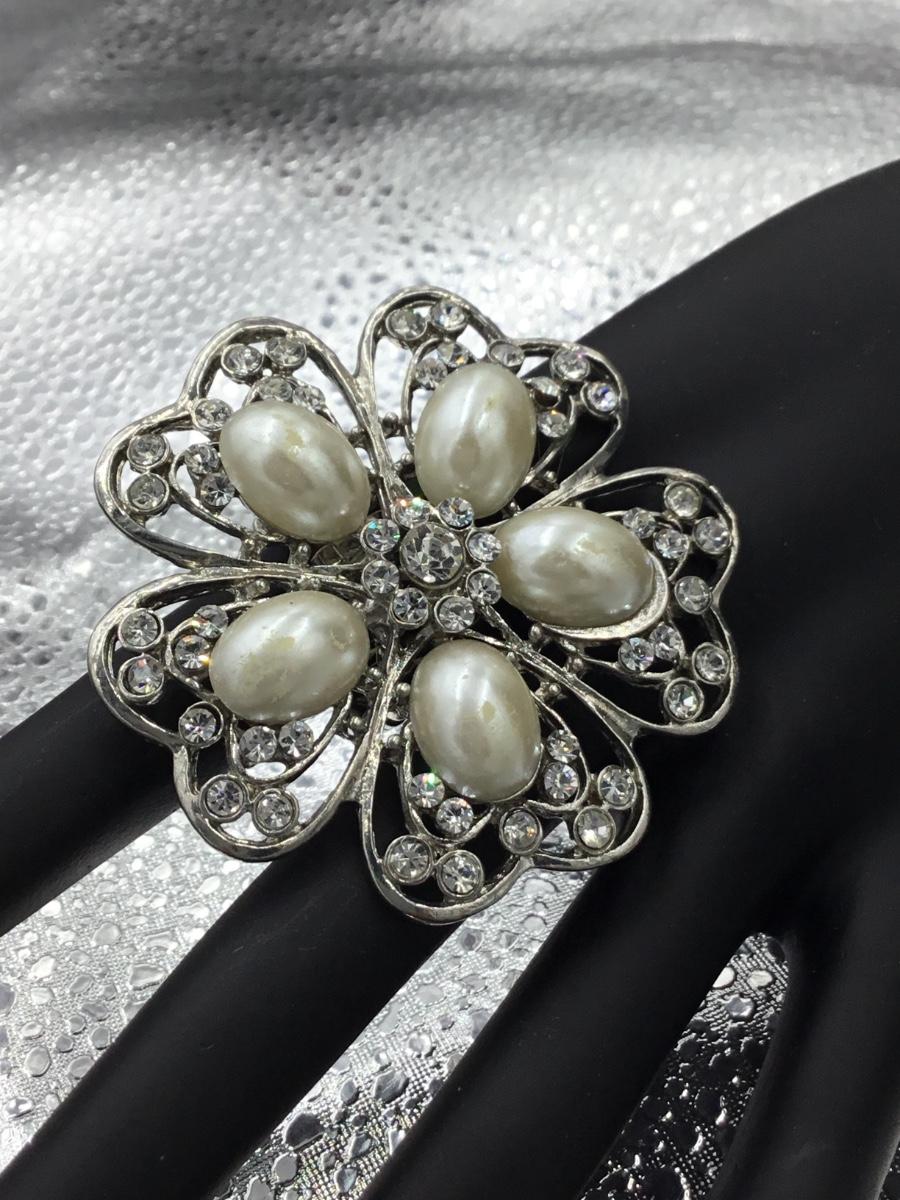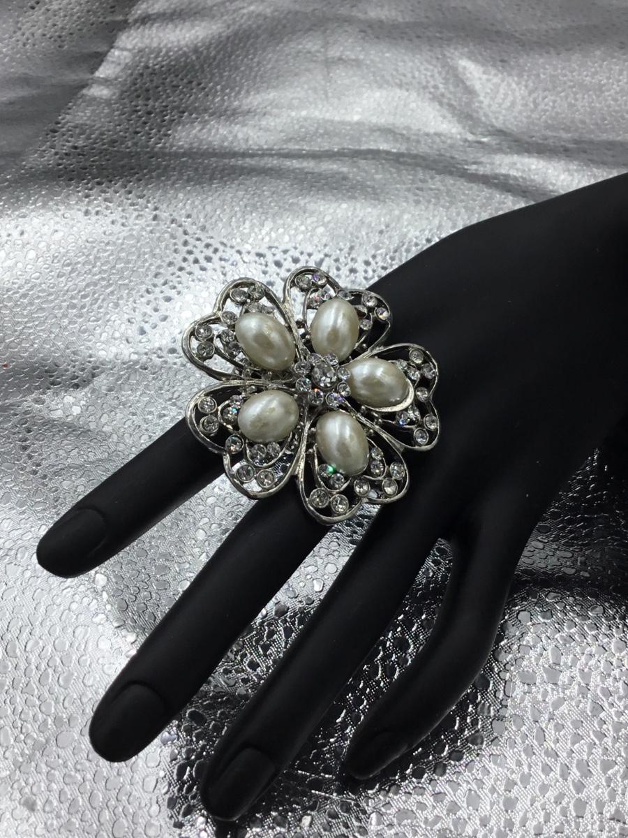 Silver tone bulky flower rhinestone ring