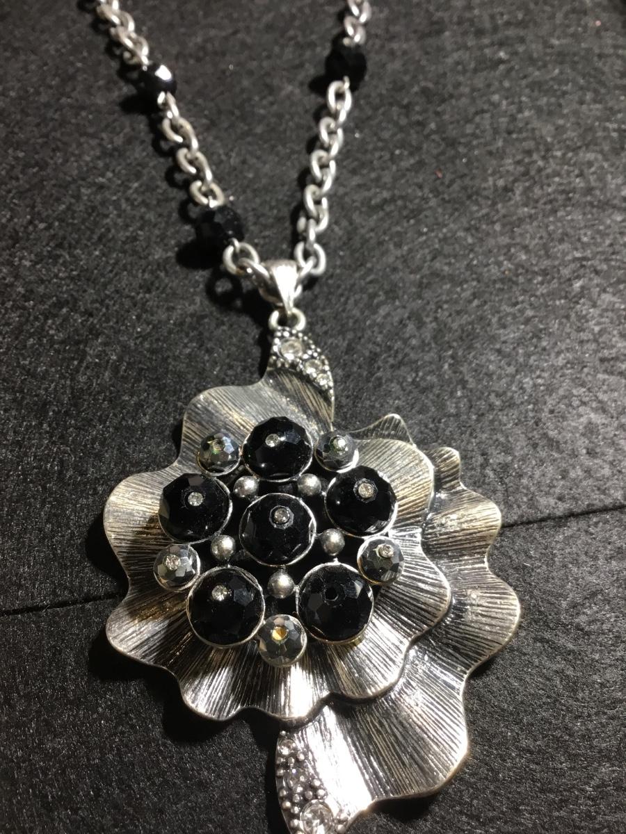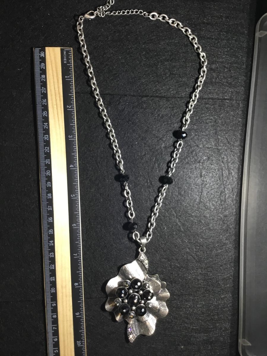 Silver tone chain faux crystal beaded statement floral pendant necklace