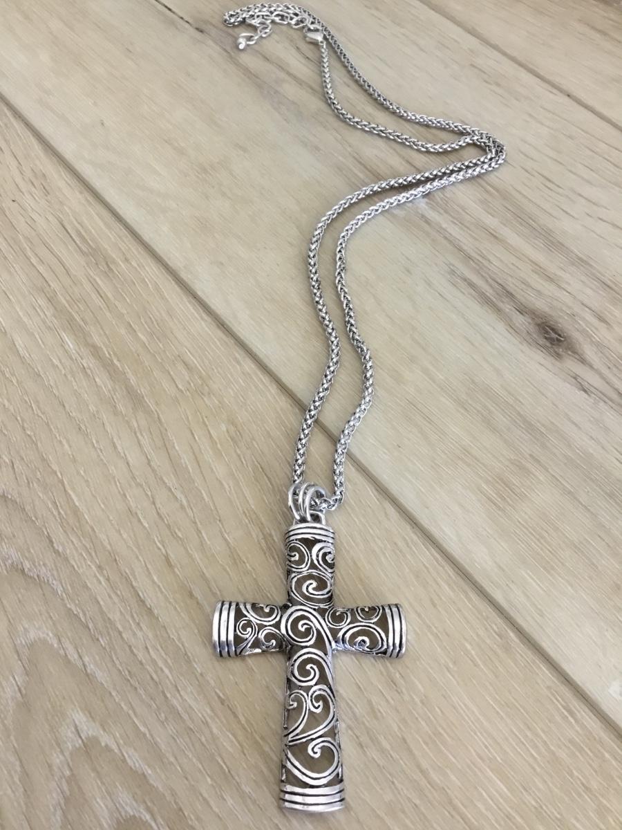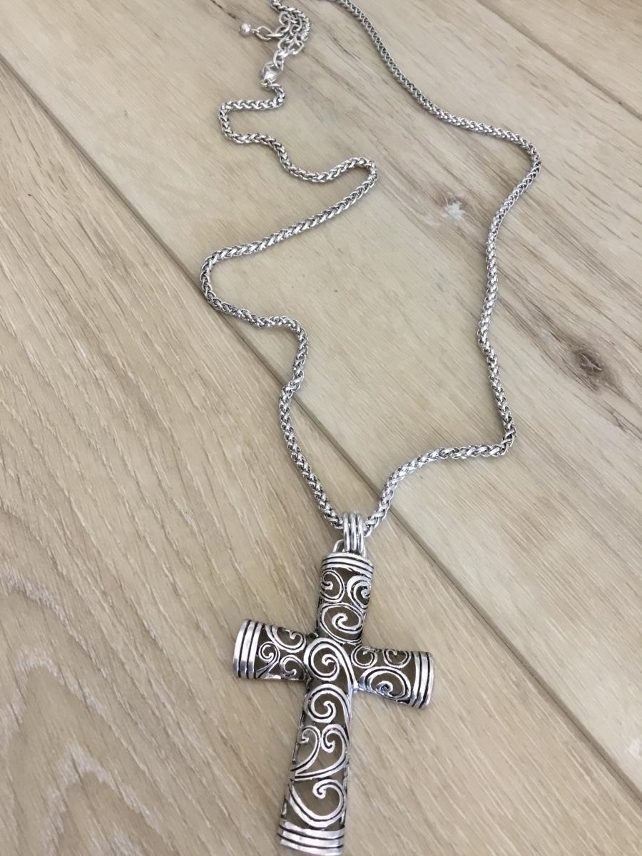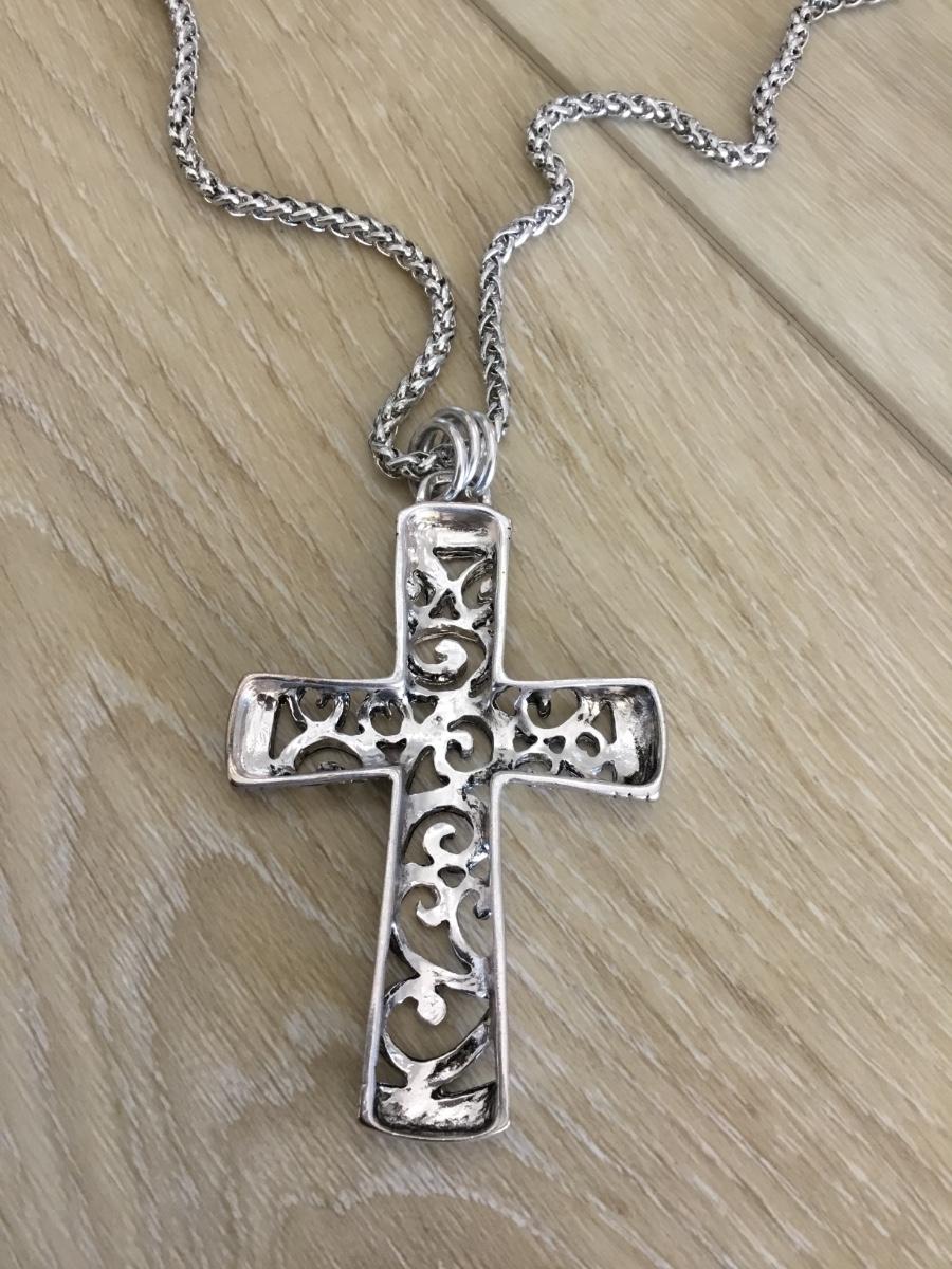 Silver tone chain with silver tone cross pendant necklace