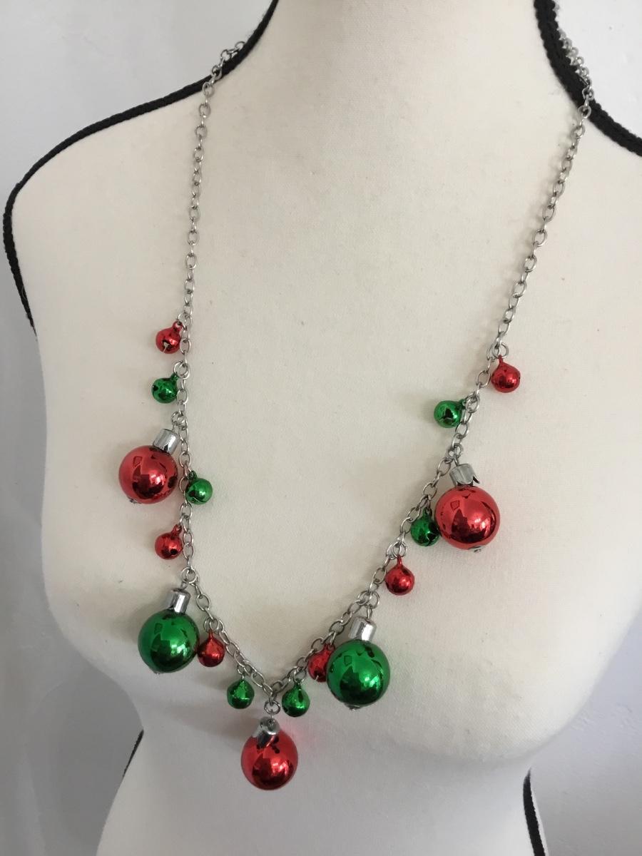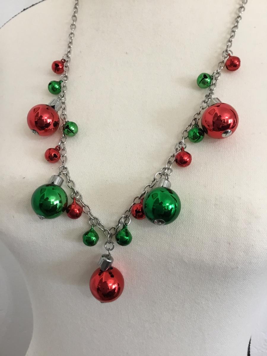 Silver tone Christmas ball necklace