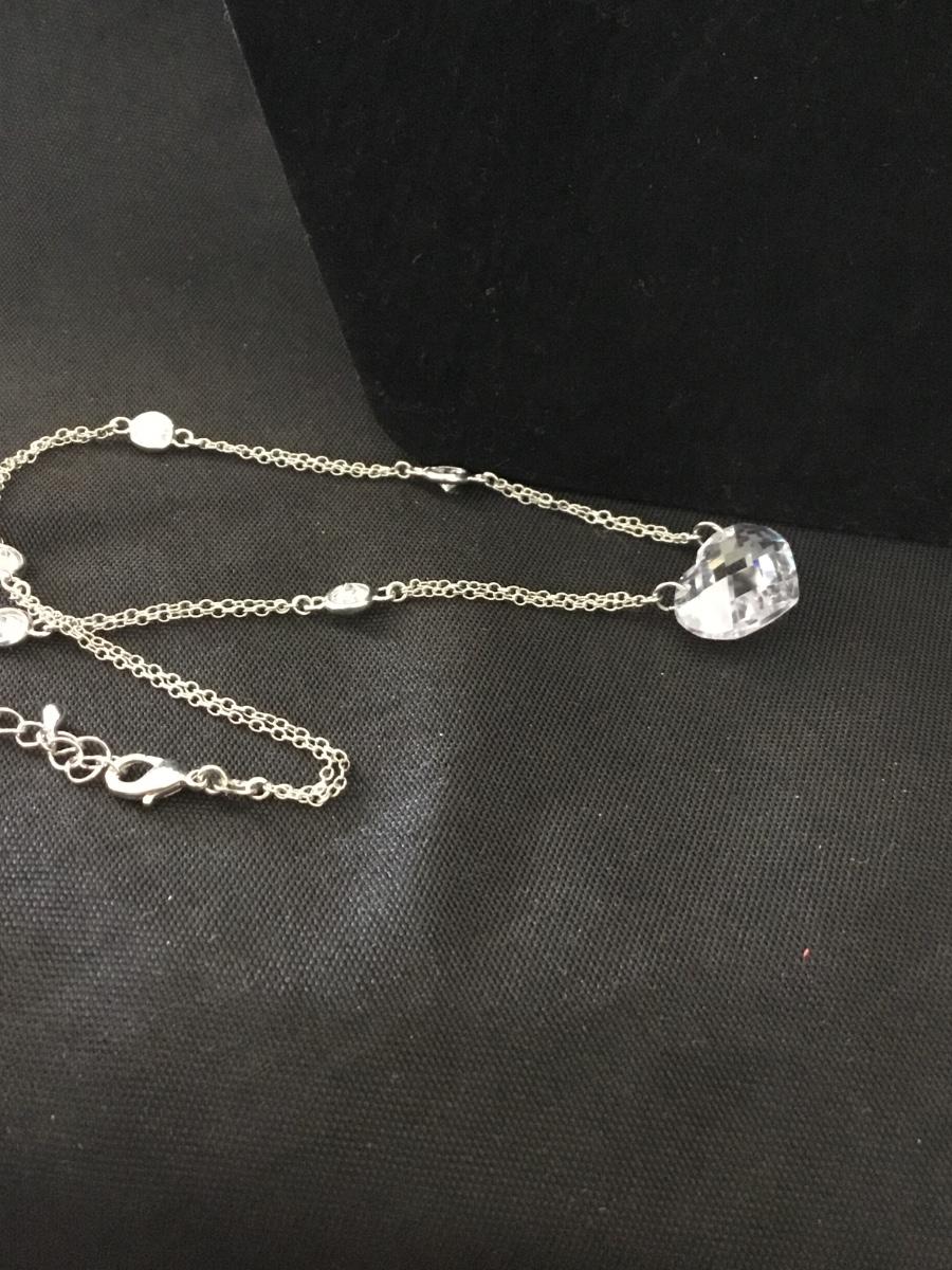 Silver tone CN marked heart rhinestone necklace