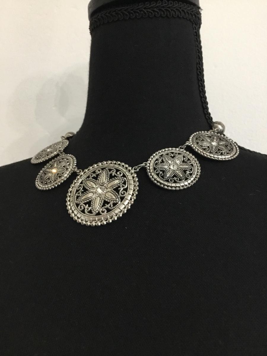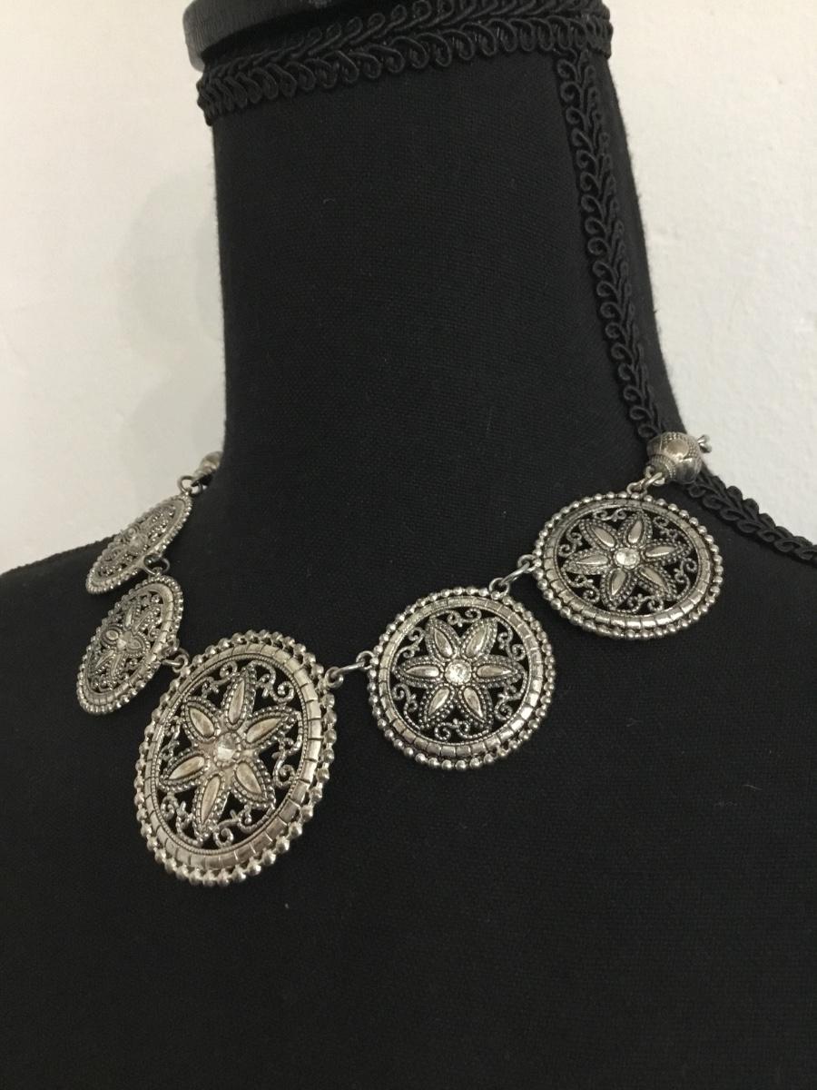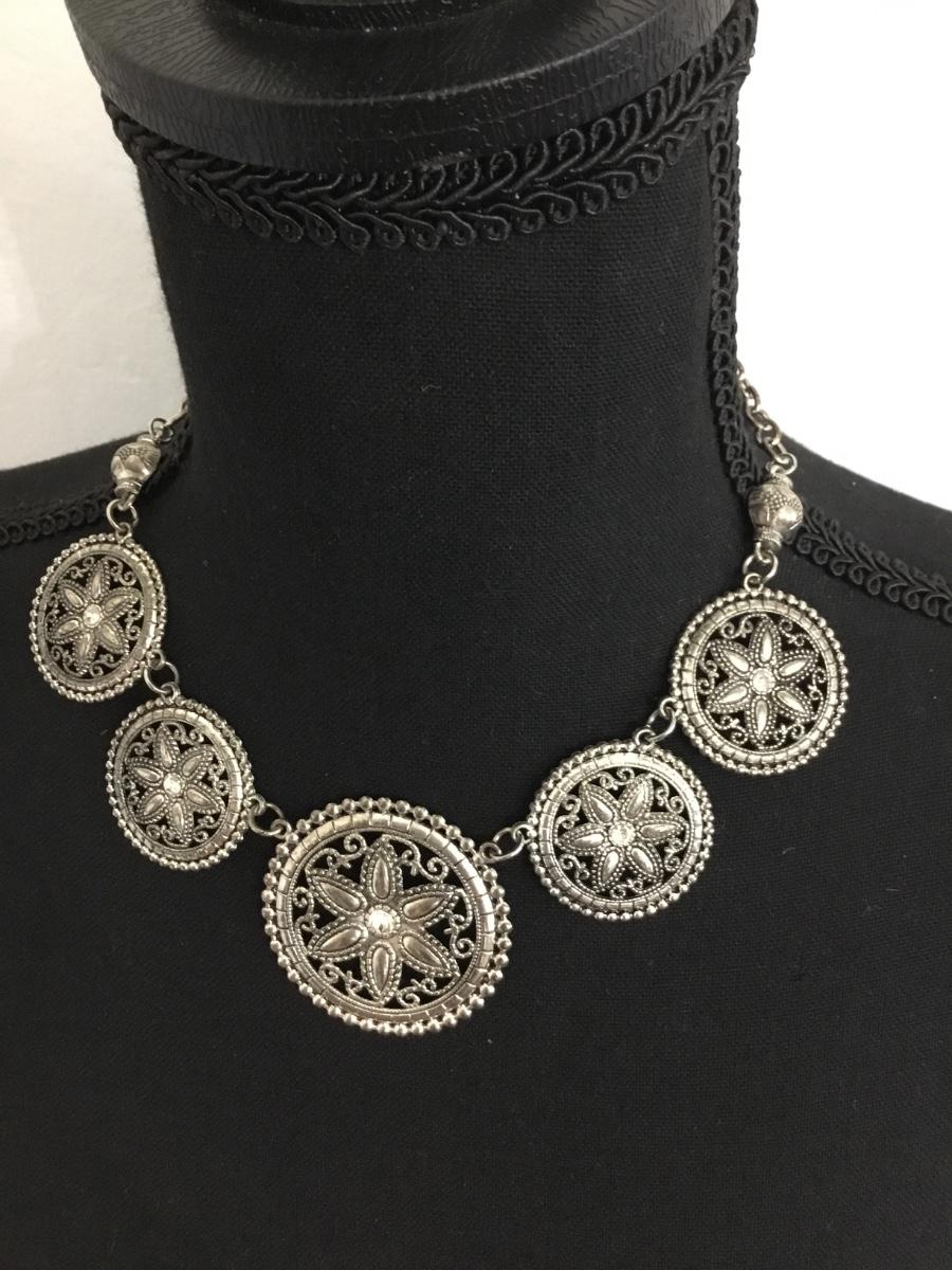 Silver tone collar necklace