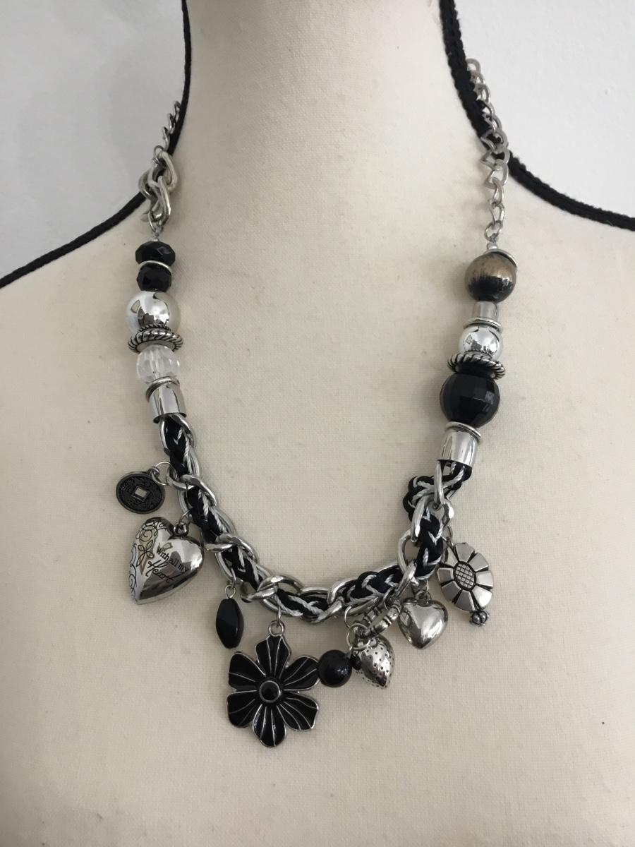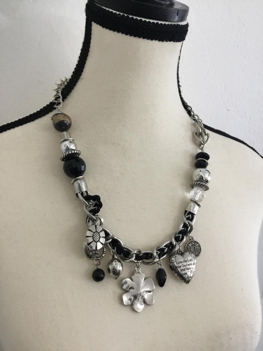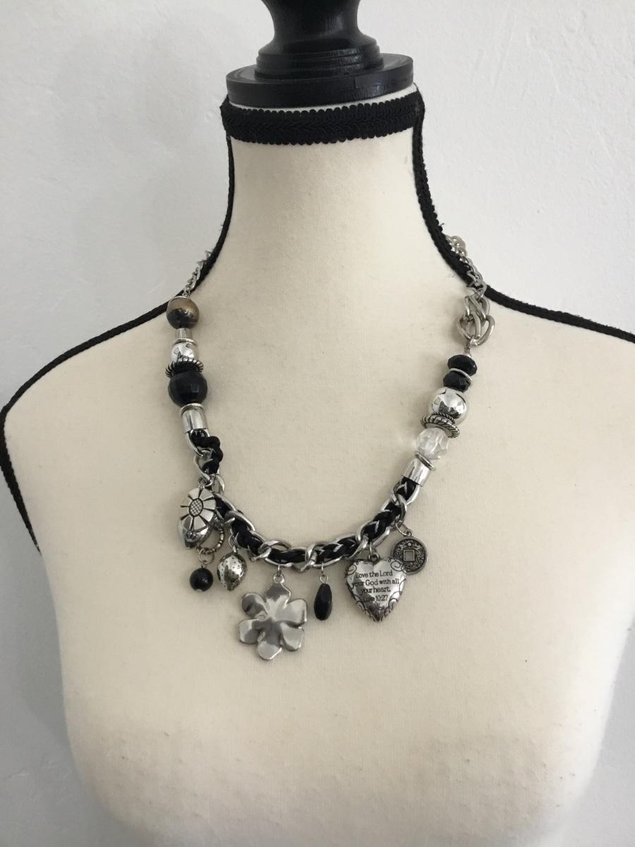 Silver tone collar statement necklace