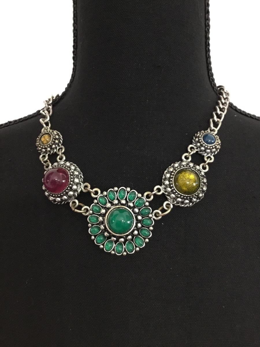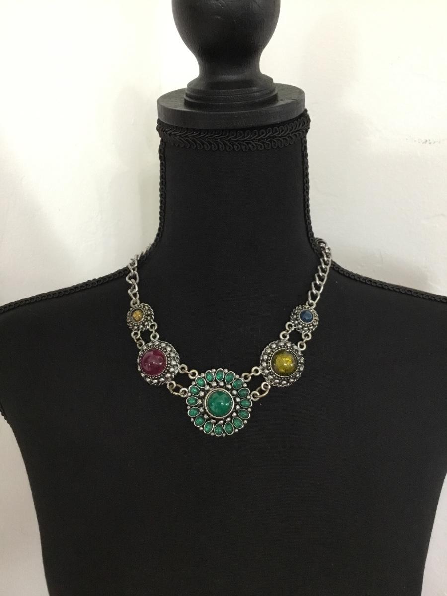 Silver tone colorful cabochon necklace