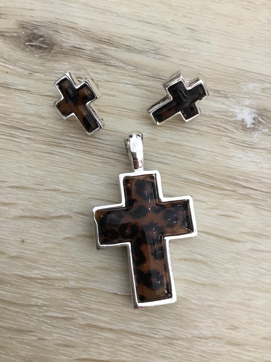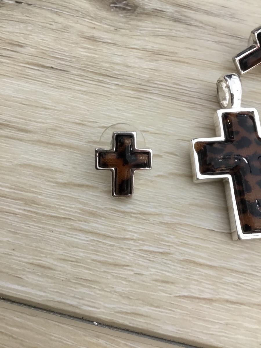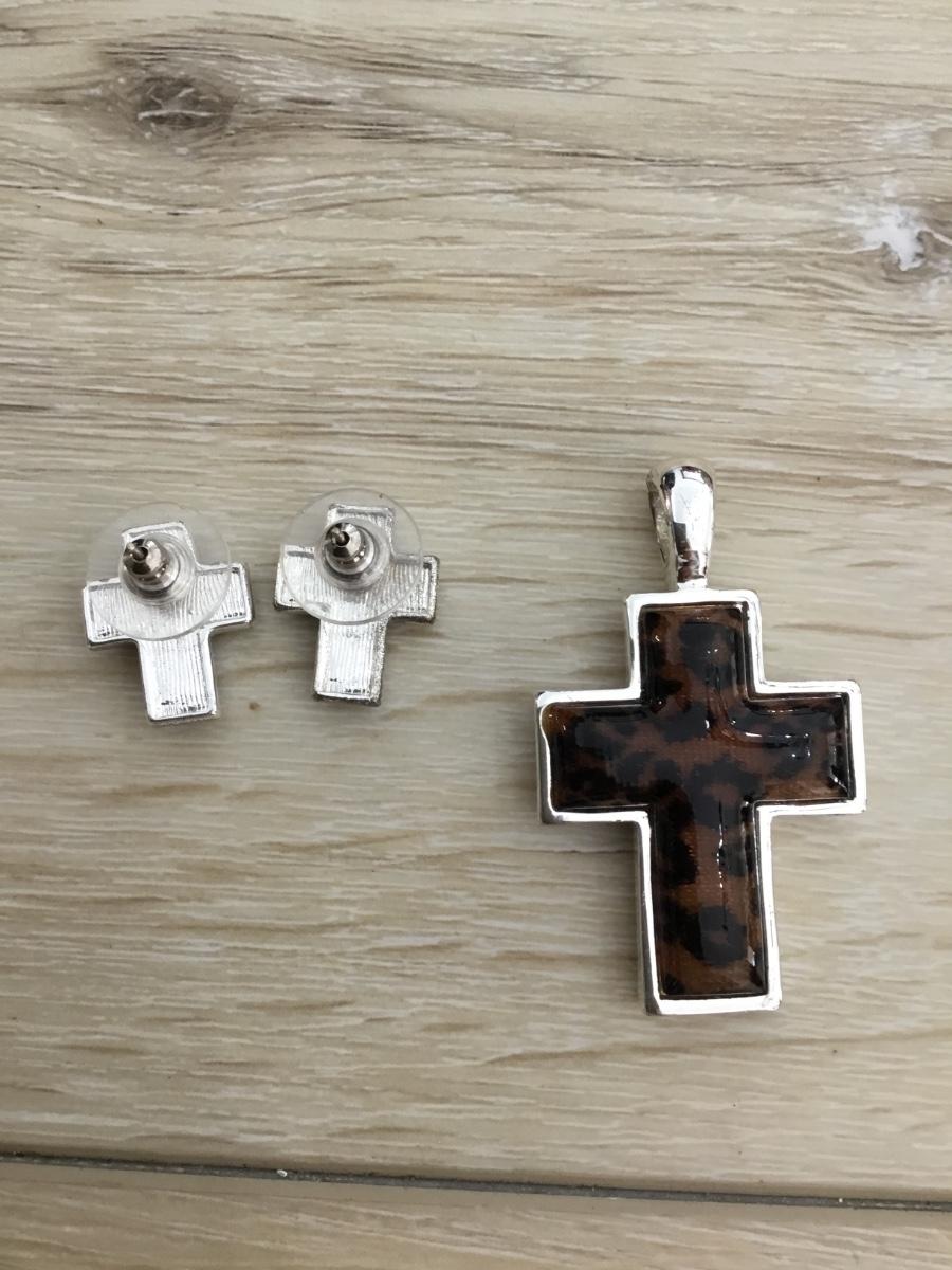 Silver tone cross pendant with stud matching earrings