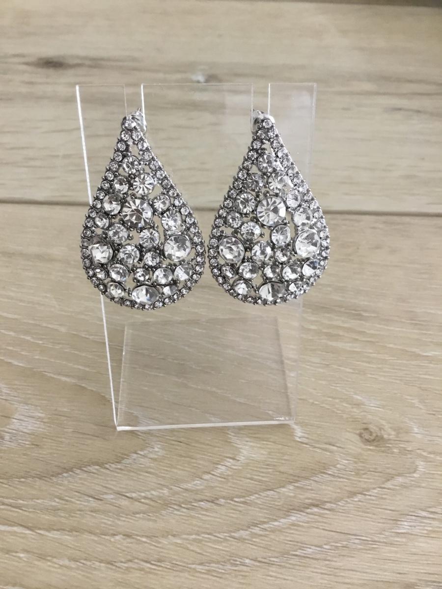 Silver tone crystal clear, rhinestone stud, fashion, statement earrings