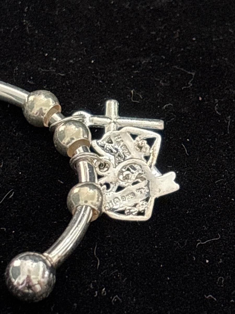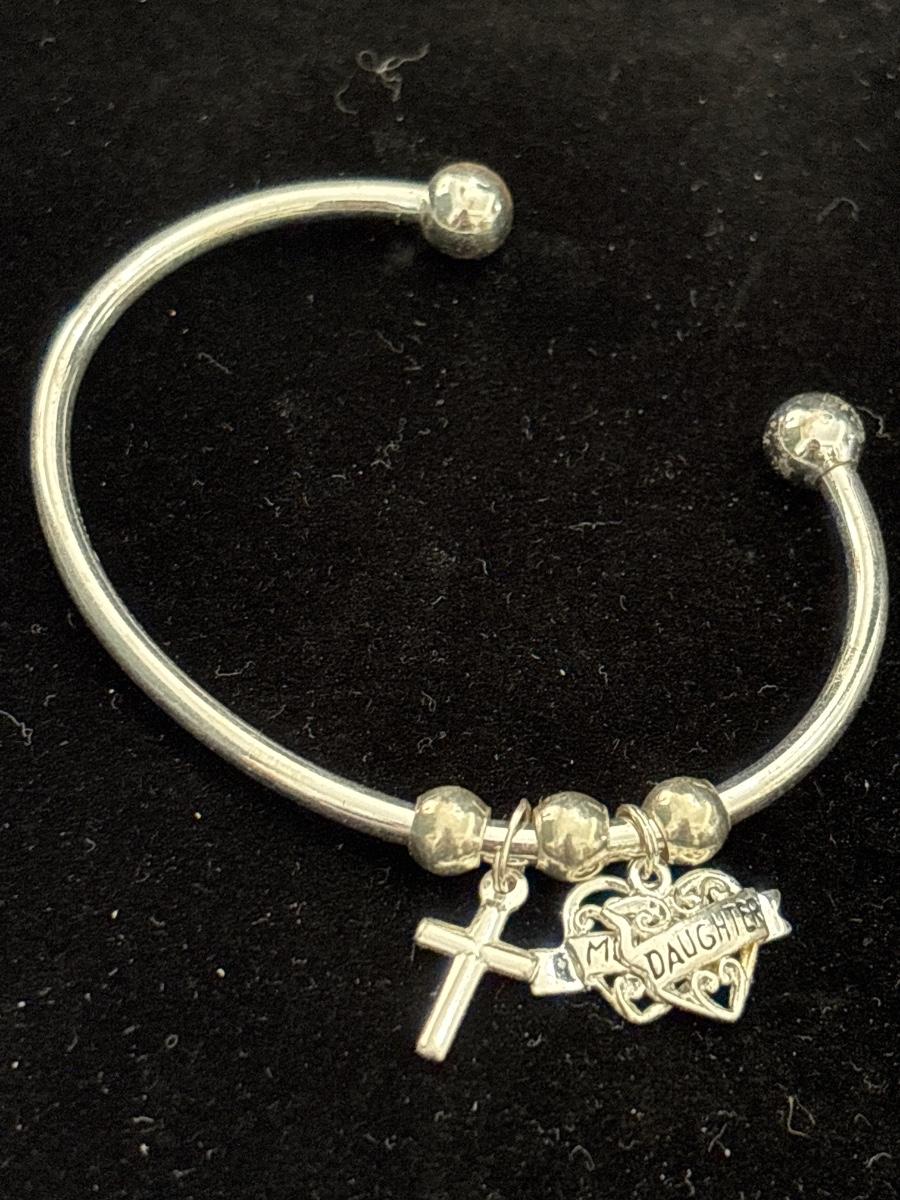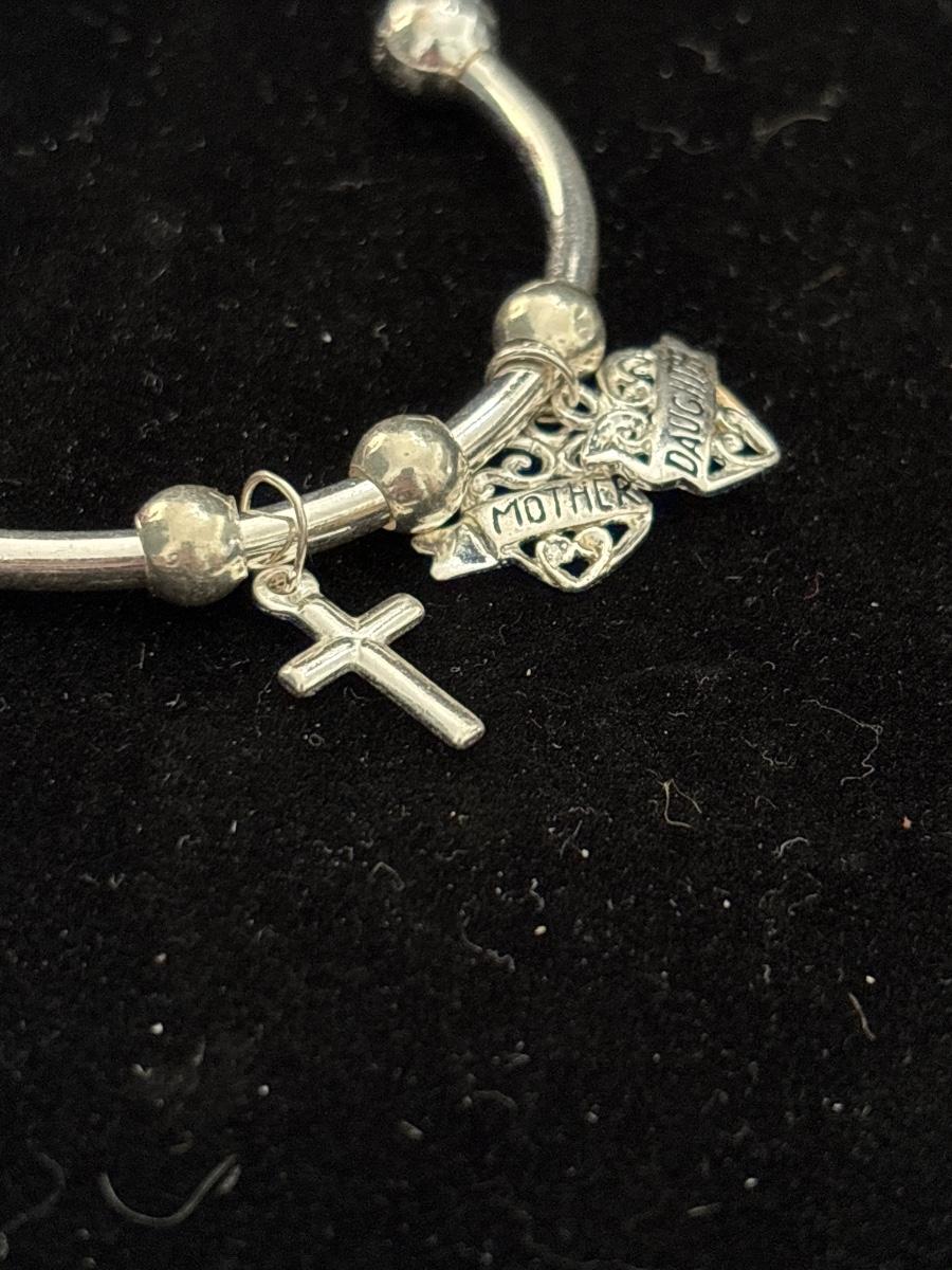 Silver tone cuff bracelet with mother daughter charm