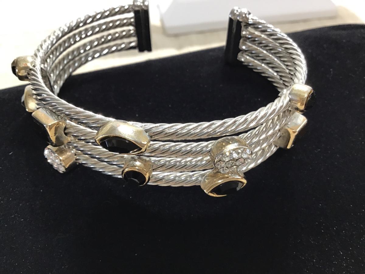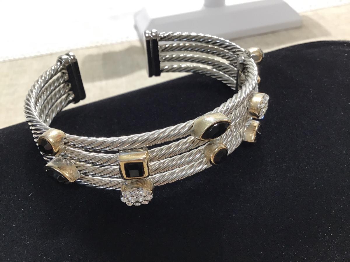 Silver Tone Cuff With Faux Black onyx And Rhinestone