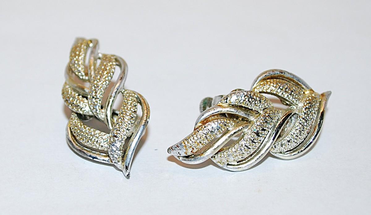 Silver Tone Dimpled LEAVES EARRINGS Set with SNAP Clasp