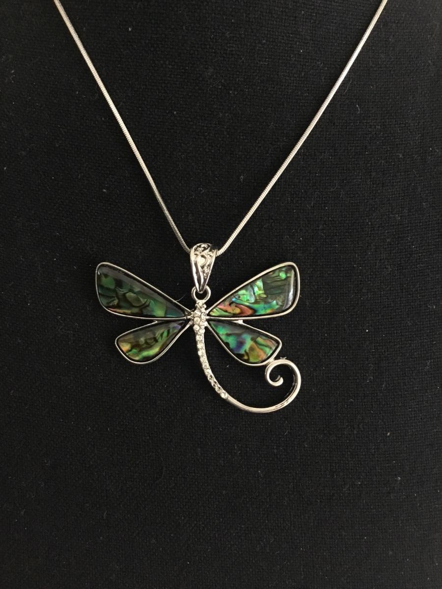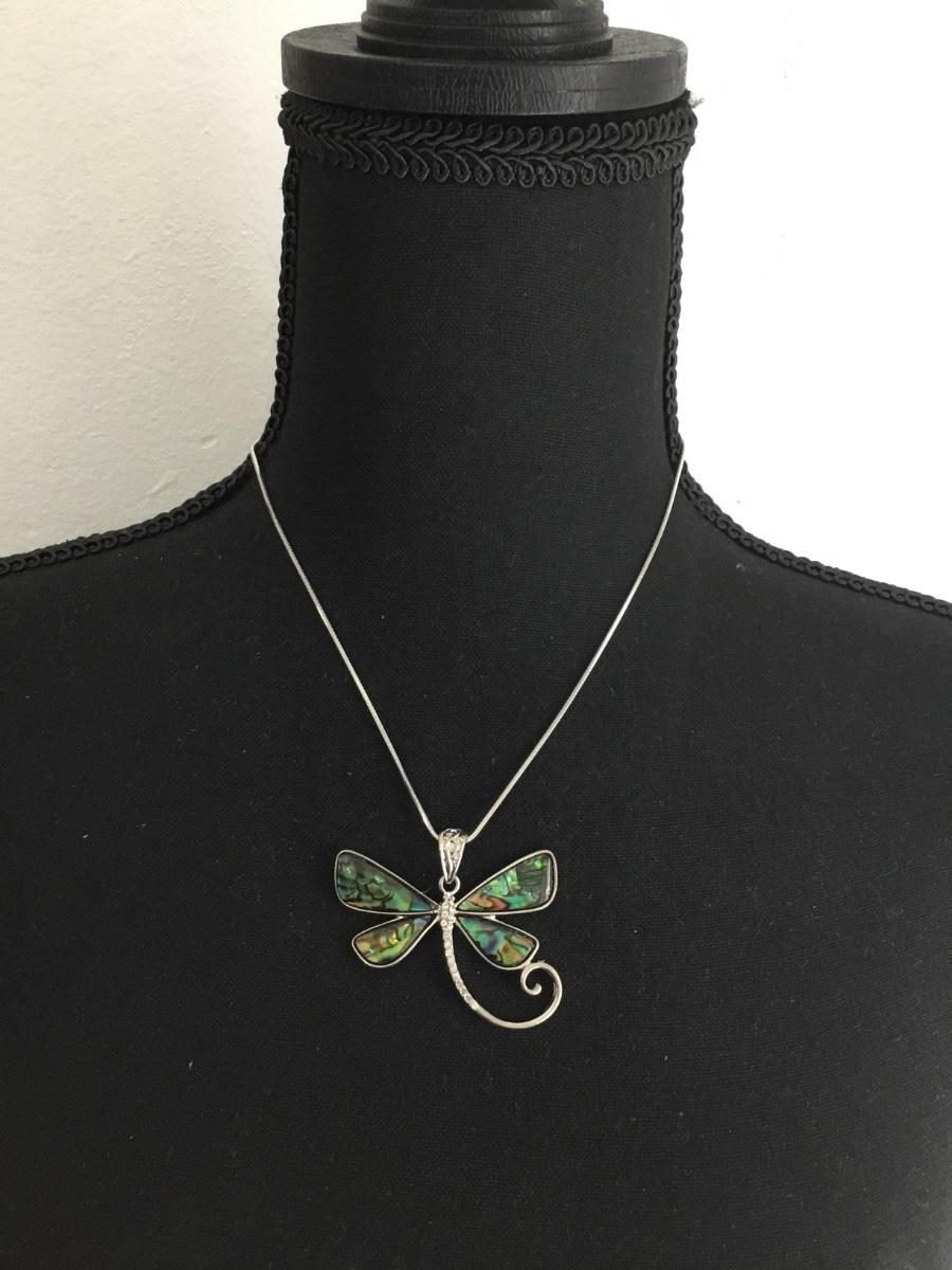 Silver tone. Dragonfly pendant, silver tone, chain necklace