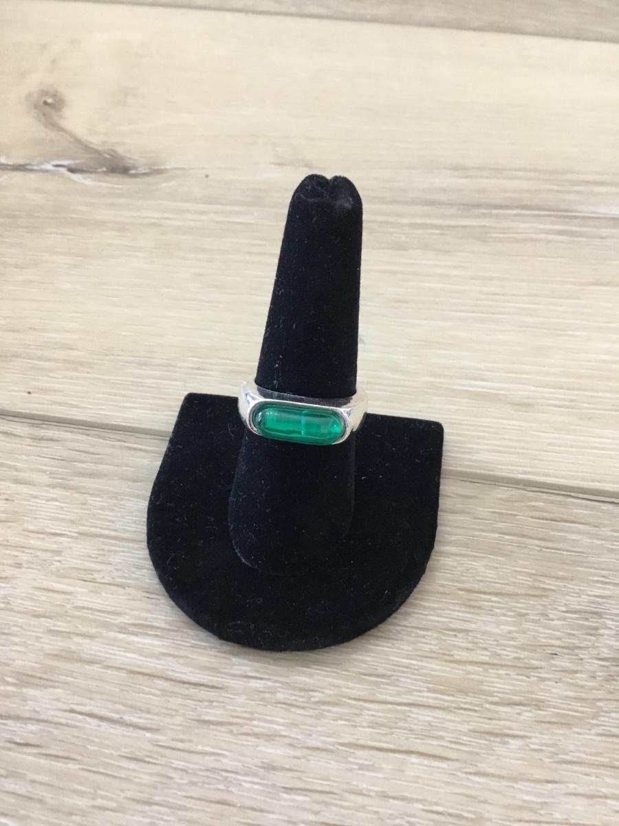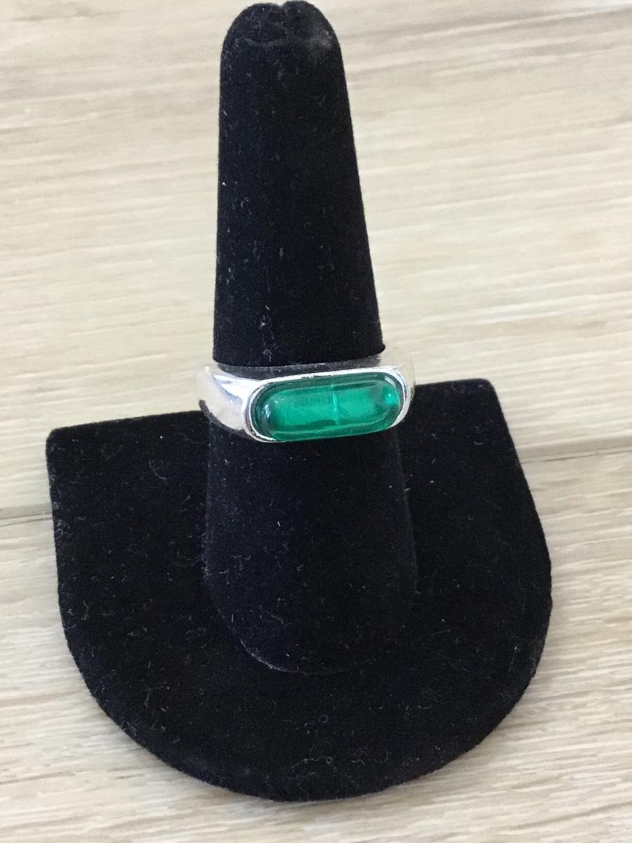 Silver tone fashion green center ring