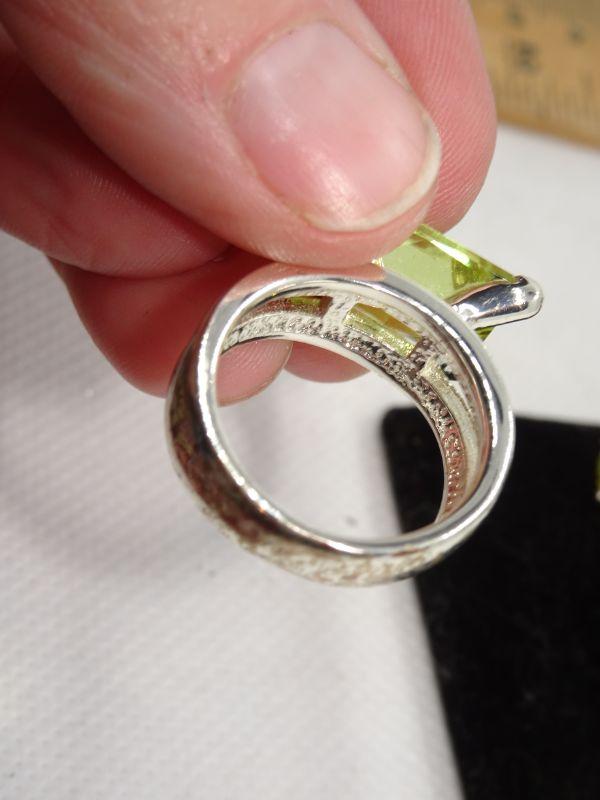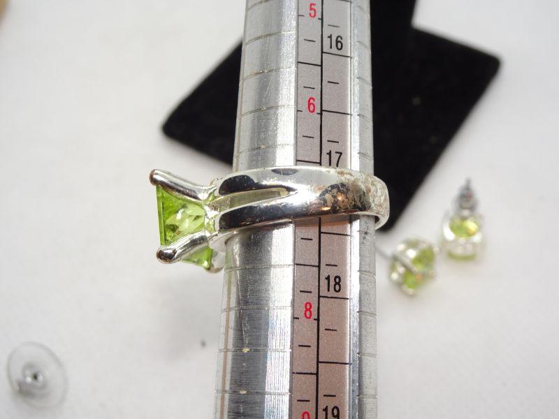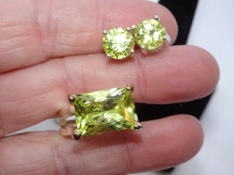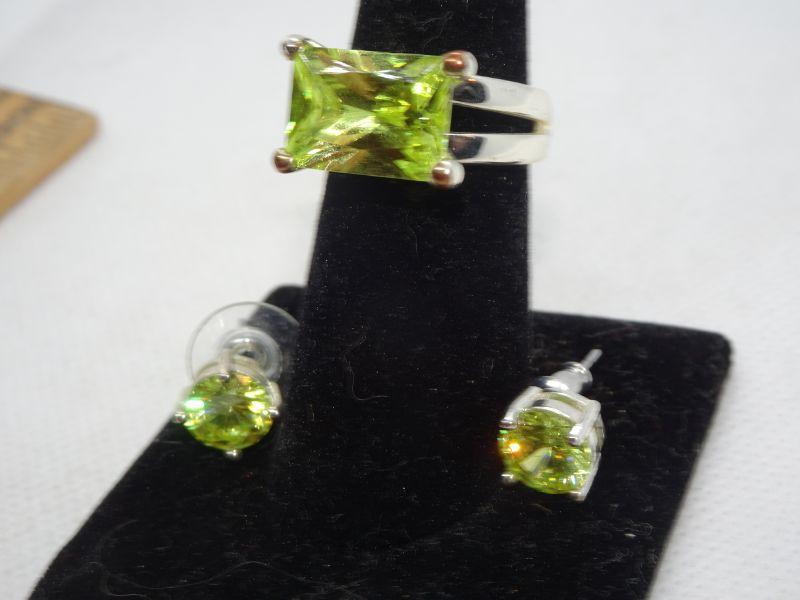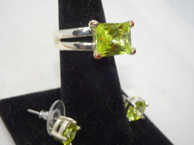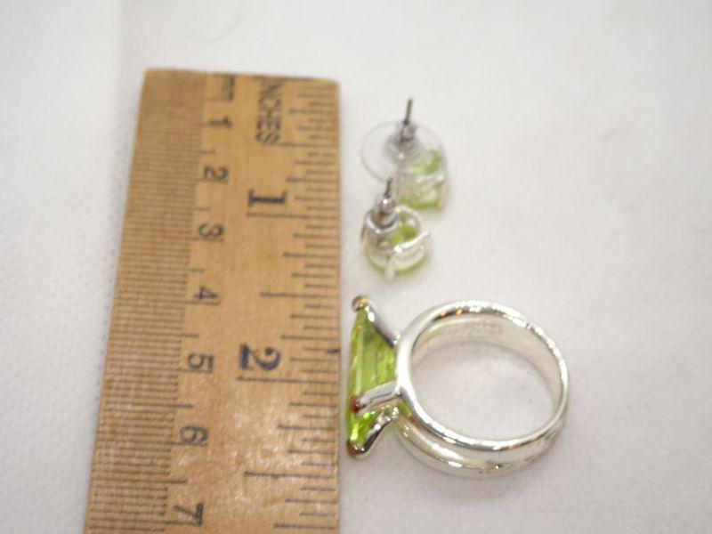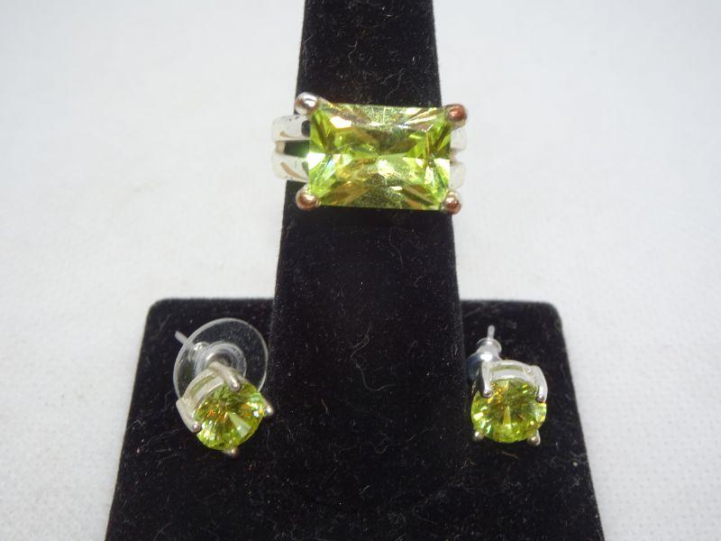 Silver Tone Faux Citrine Colored Ring & Post Earrings