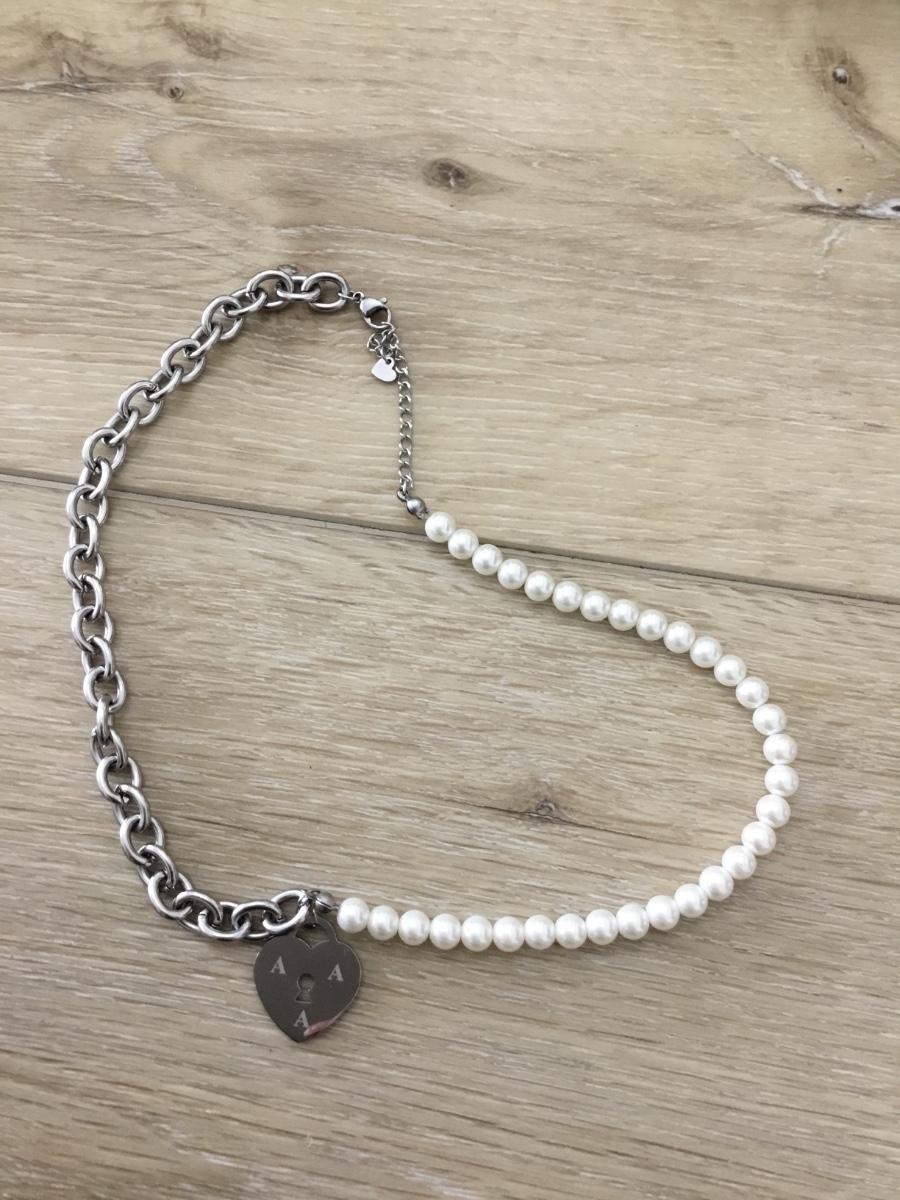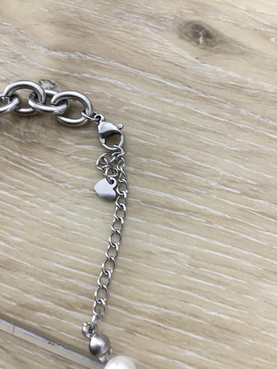 Silver tone faux pearl and chain bib necklace