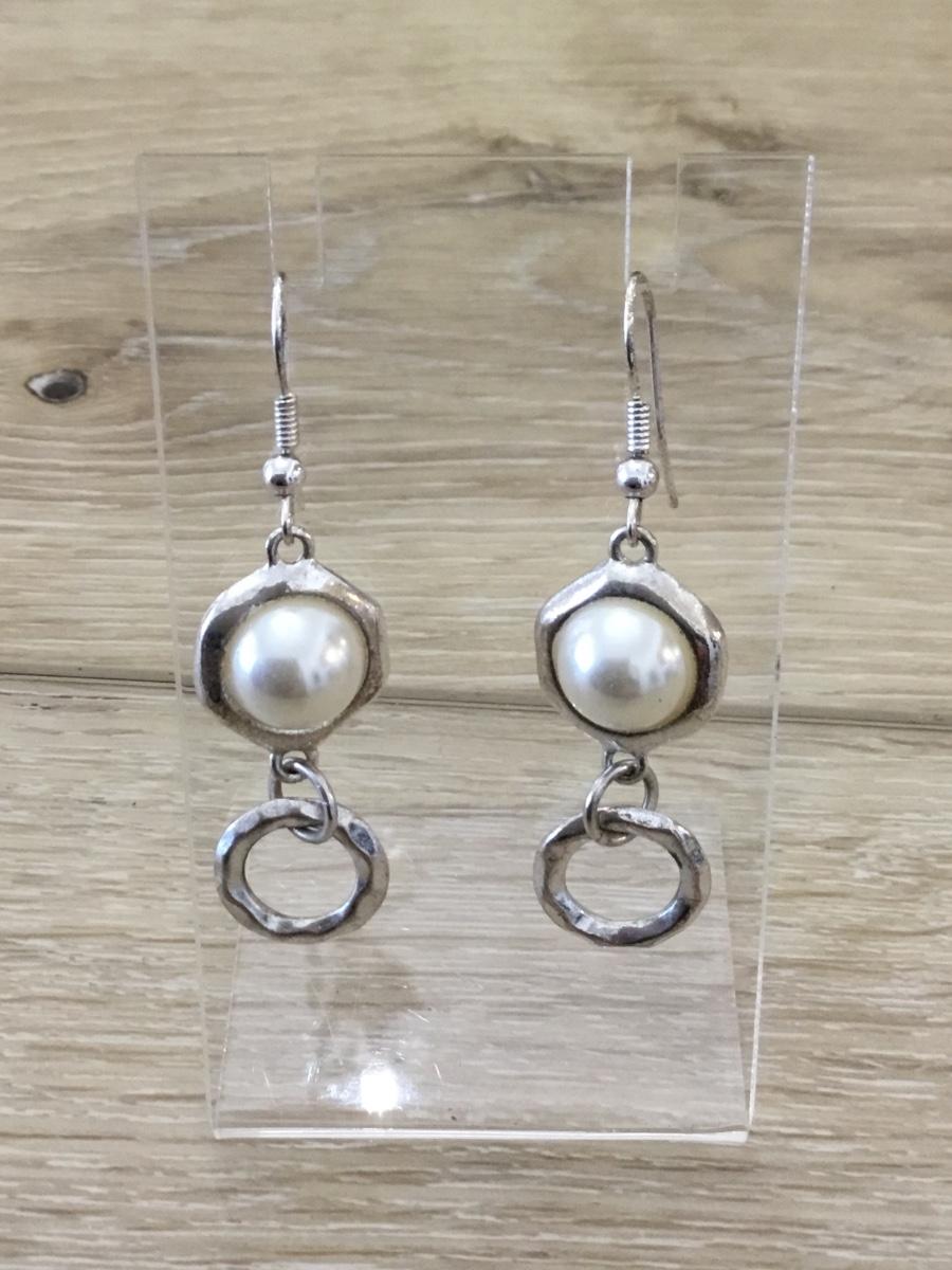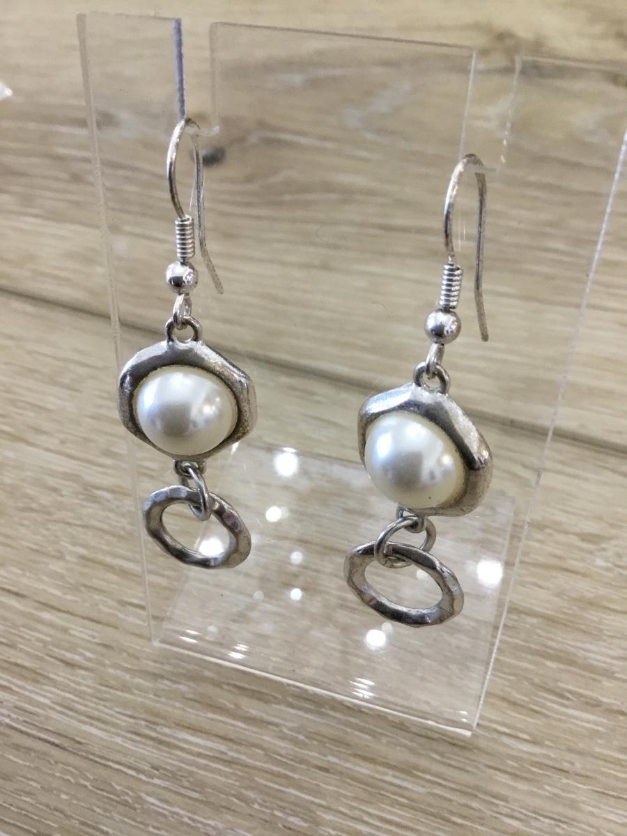 Silver tone faux pearl dangle earrings