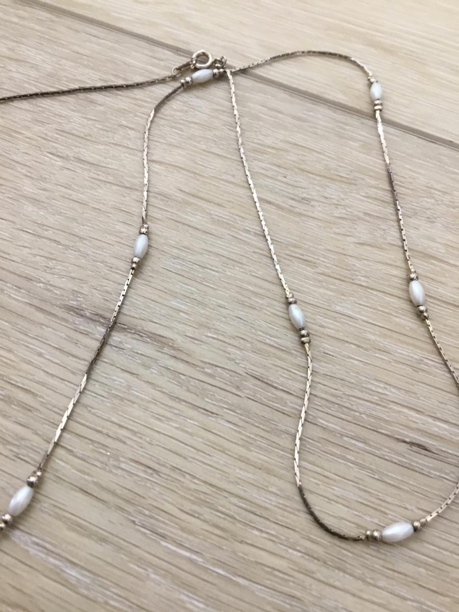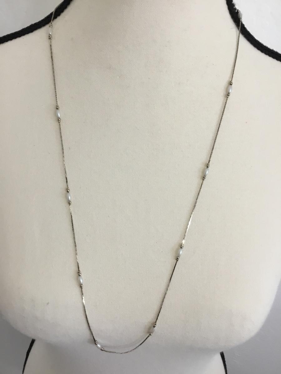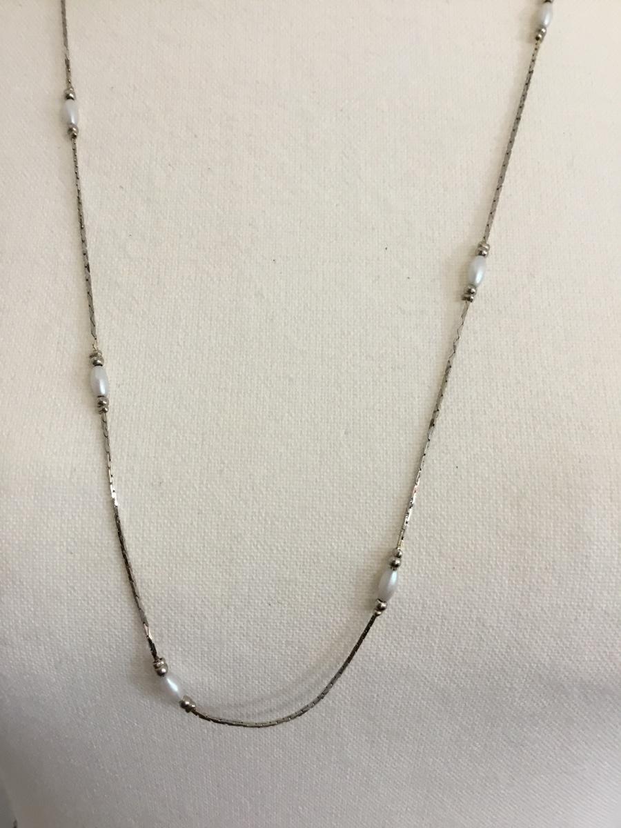 Silver tone faux pearl long necklace