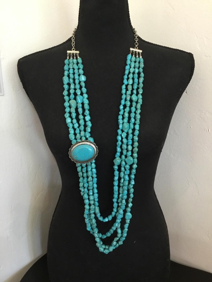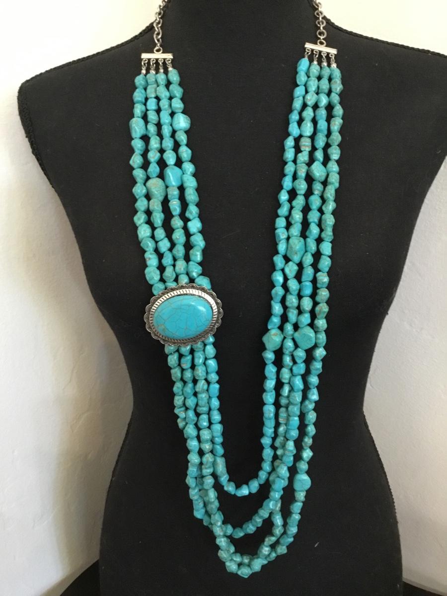 Silver tone faux, turquoise, stone, large, chunky heavy statement necklace