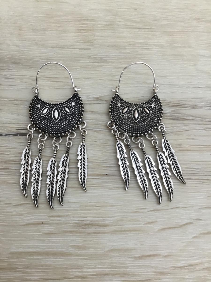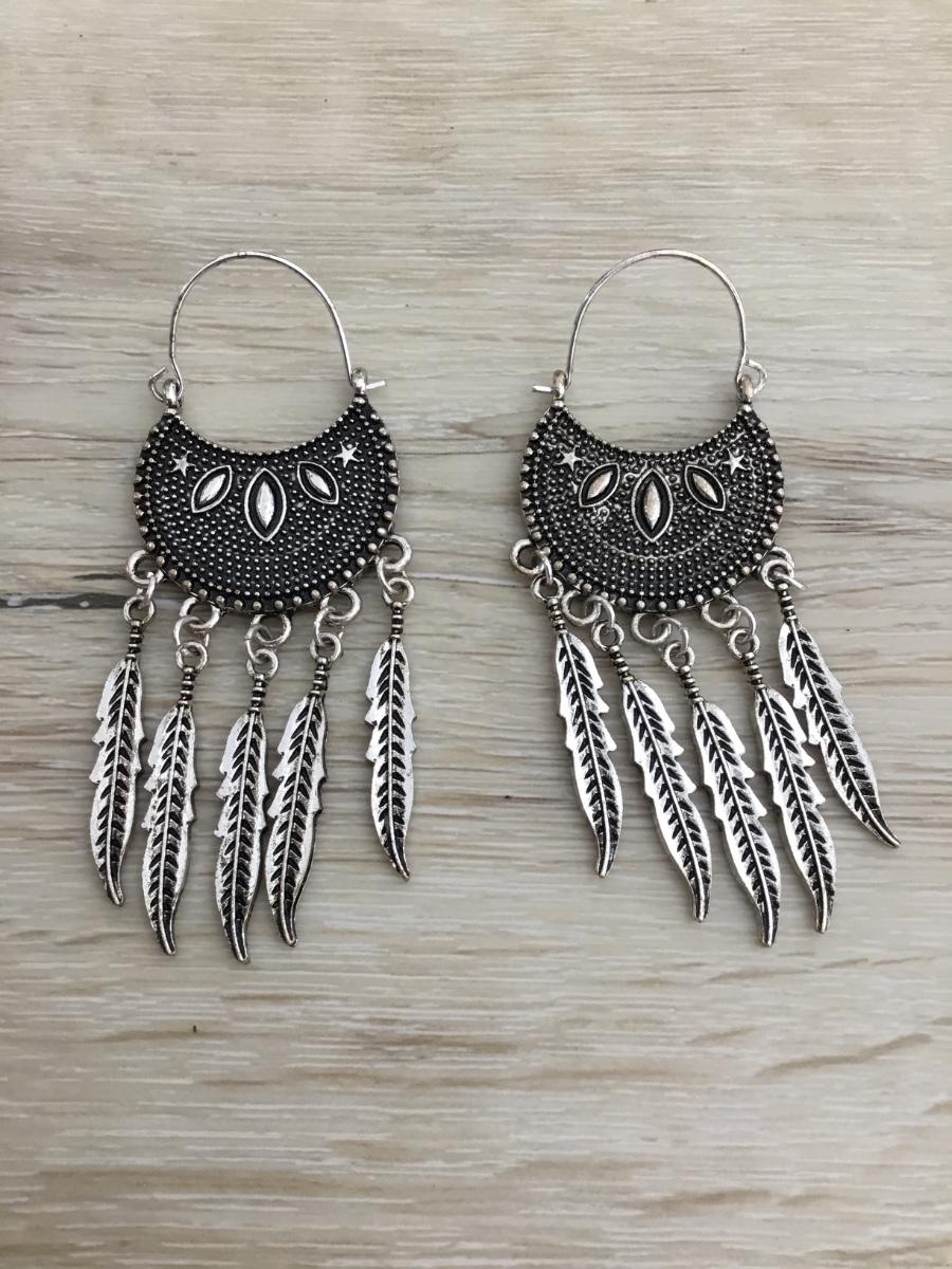 Silver tone feather fashion earrings