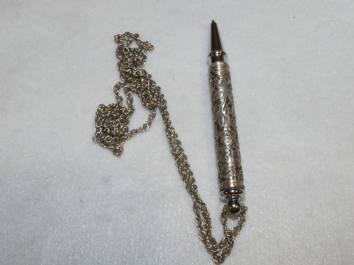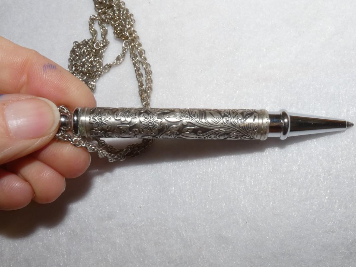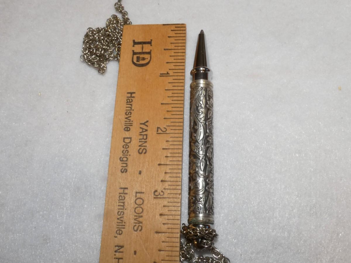 Silver Tone Filagree Scroll Ink Pin Necklace