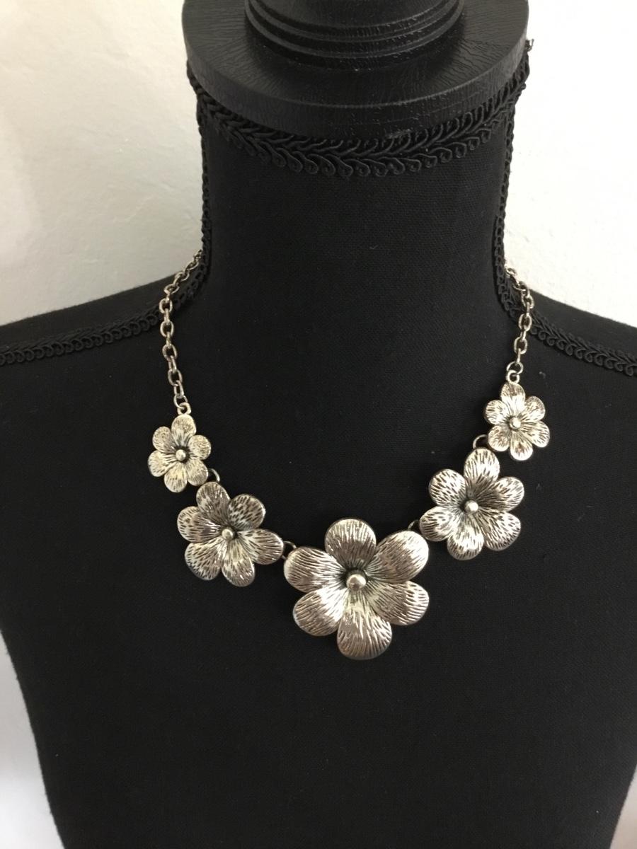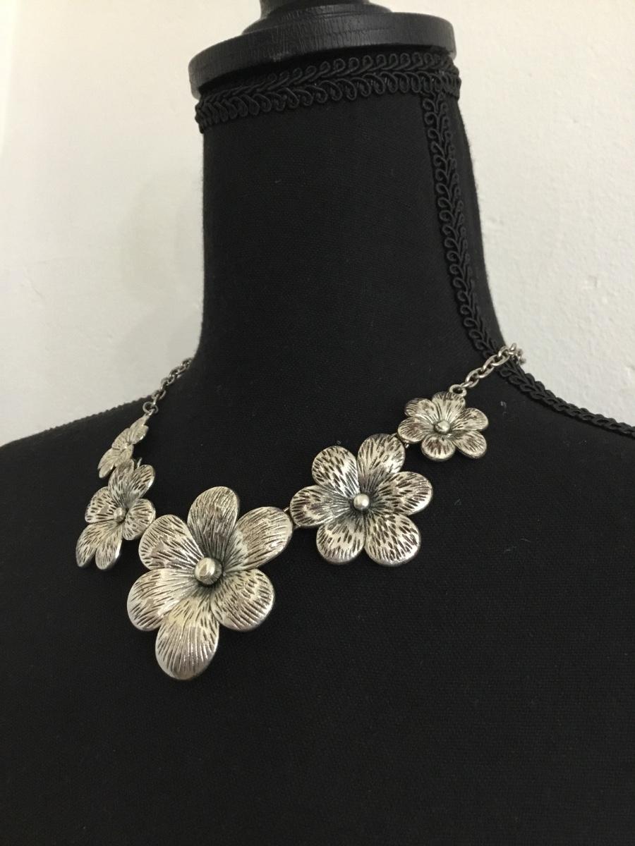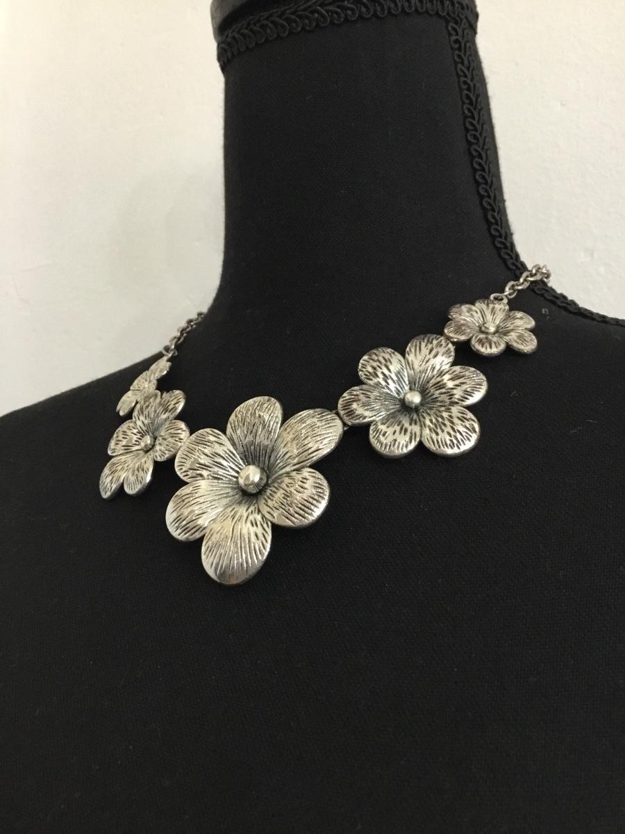 Silver tone floral statement necklace