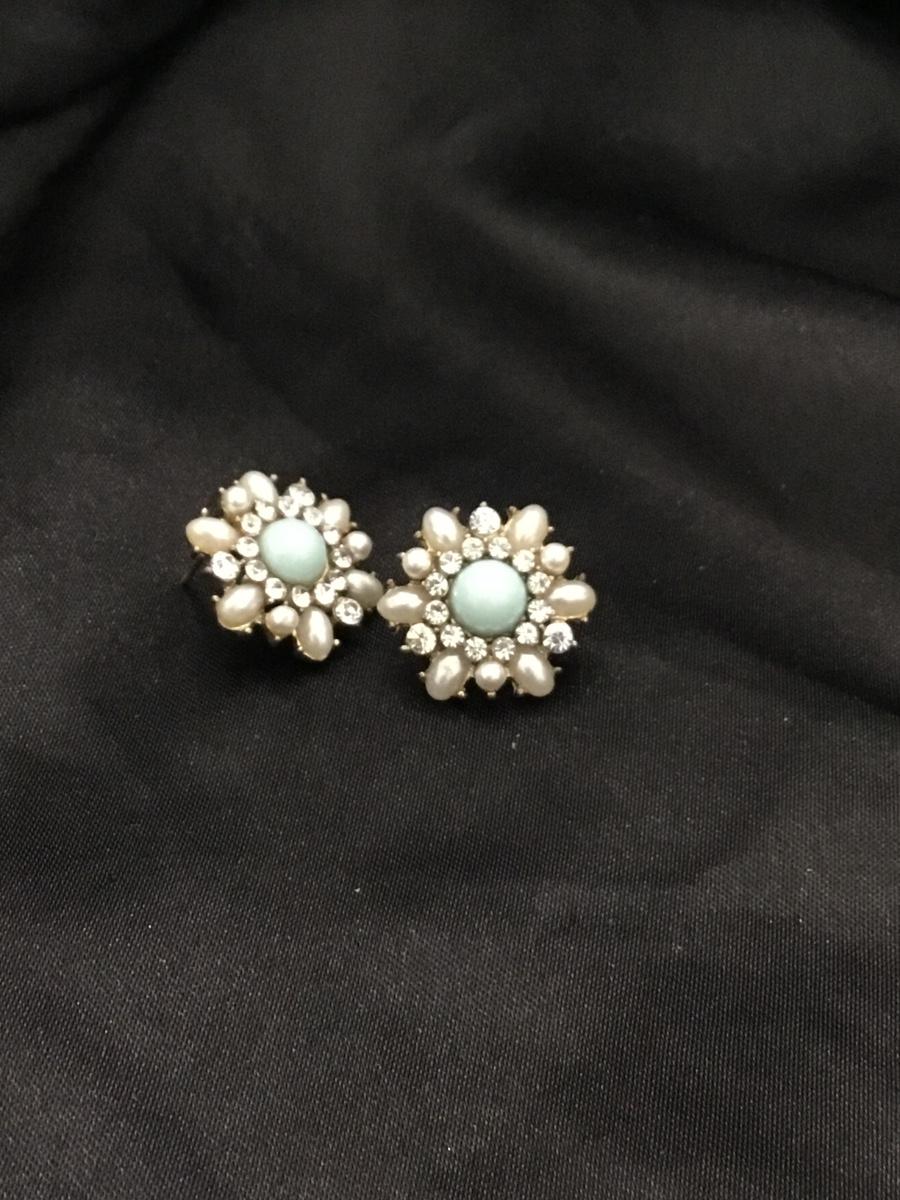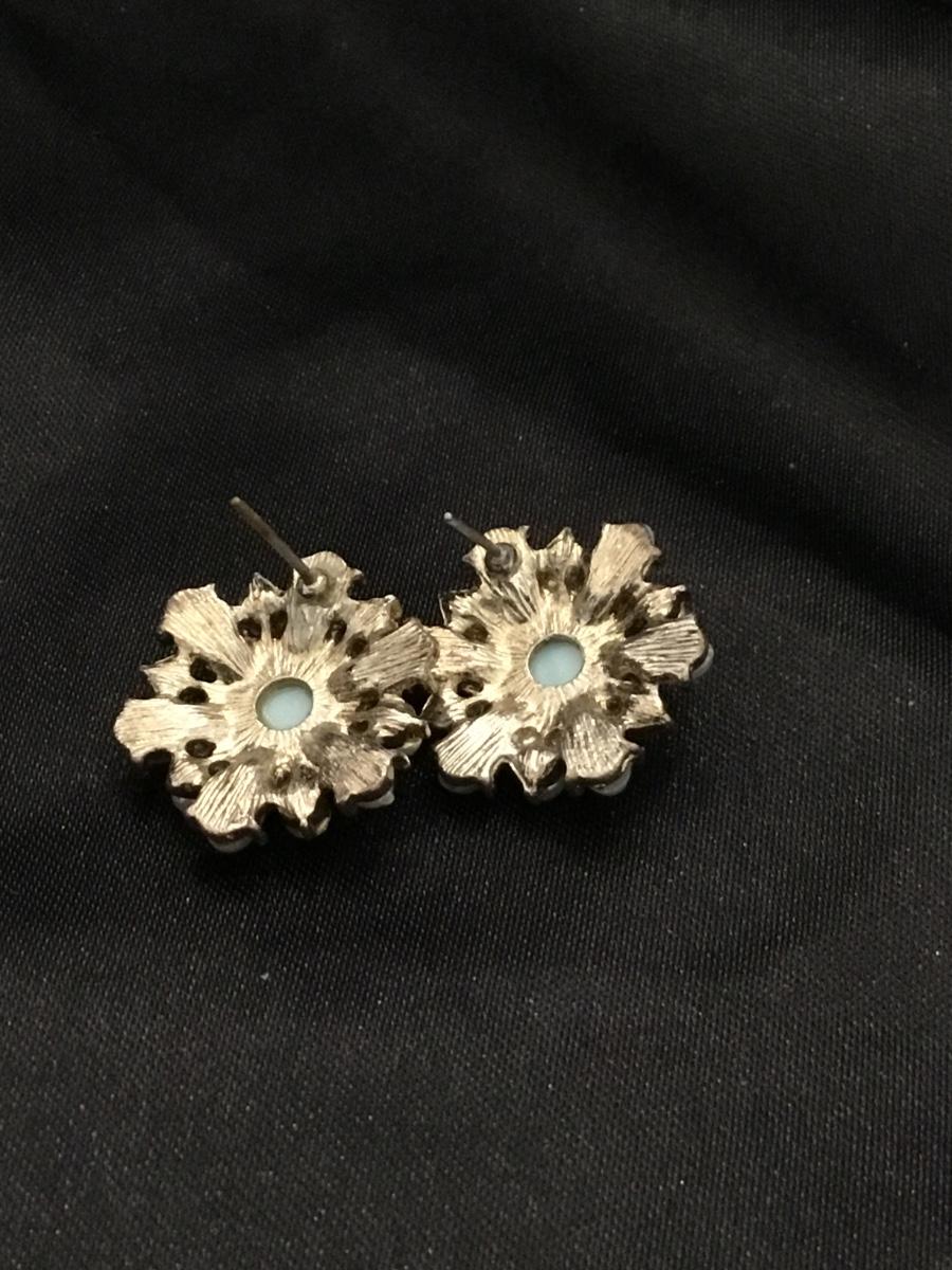 Silver tone flower earrings with turquoise tone middle stone