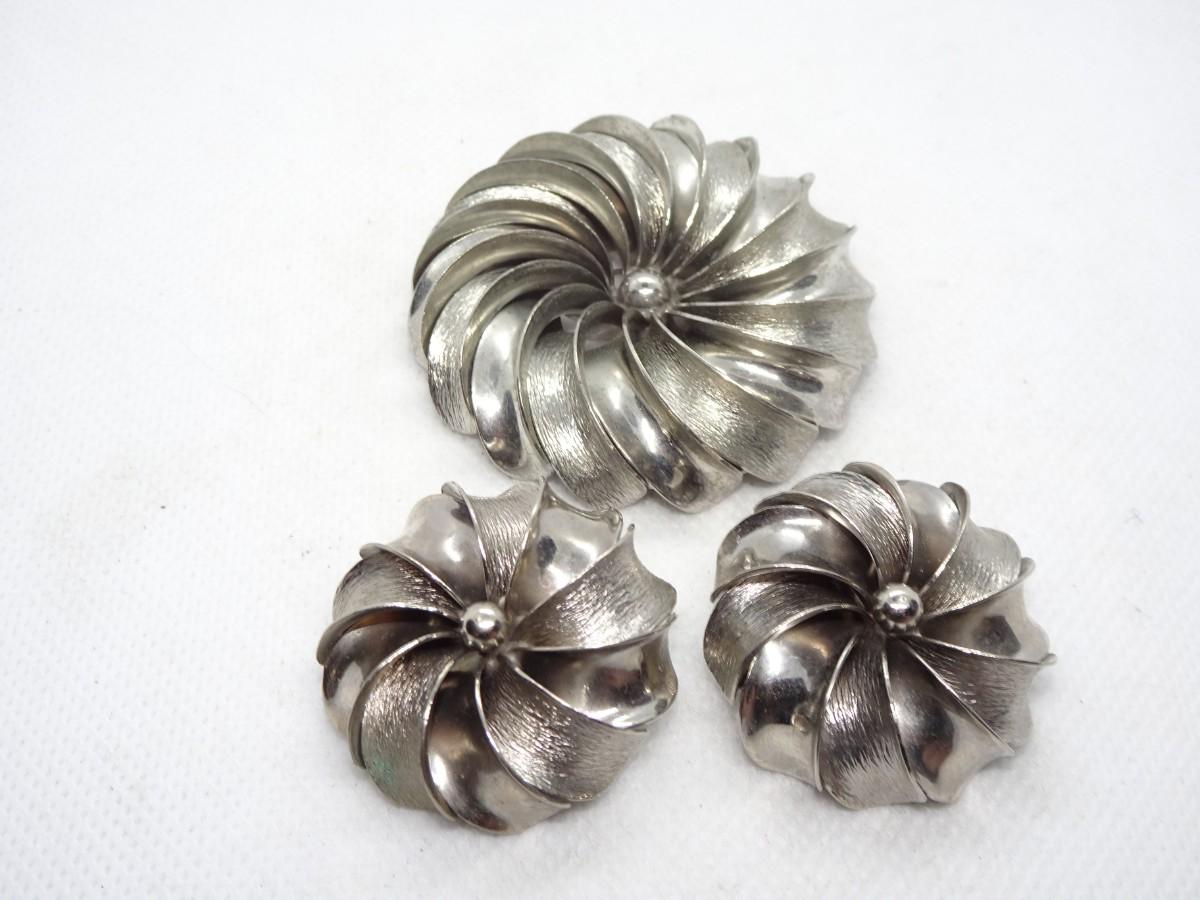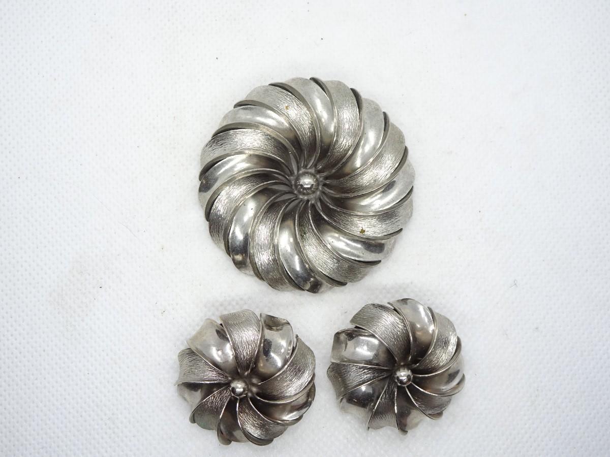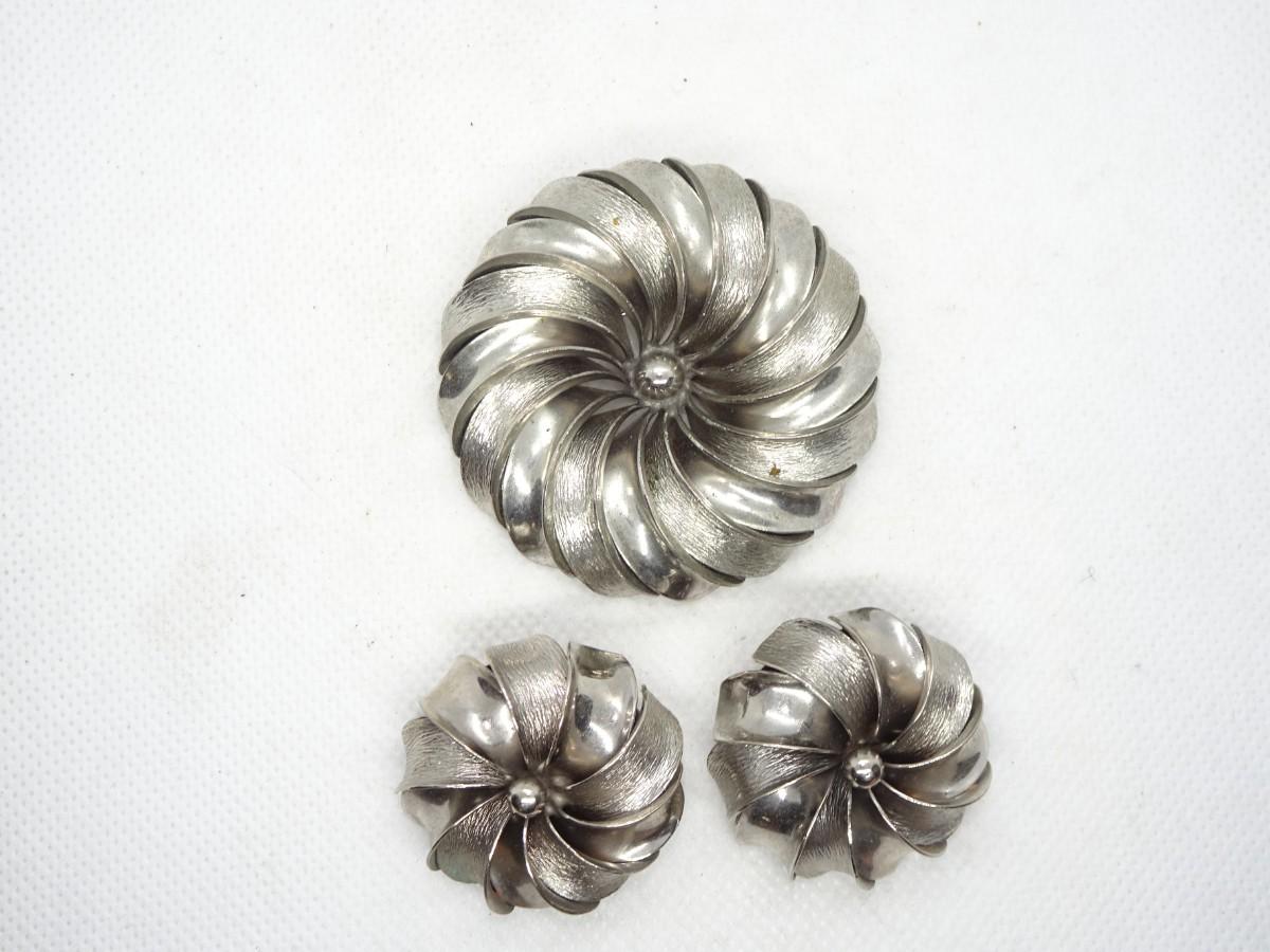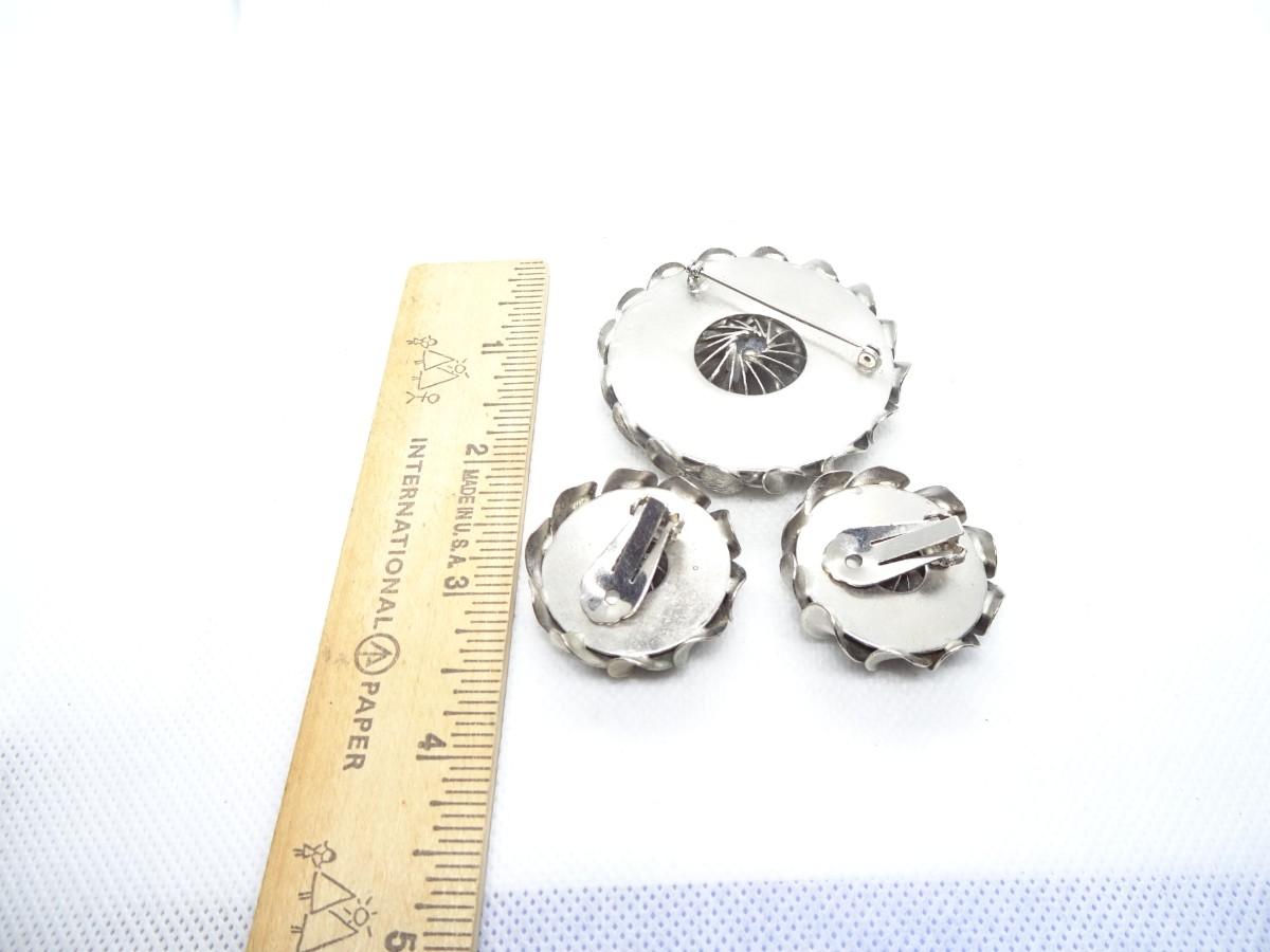 Silver Tone Flower Pin Brooch & Matching Clip Earrings