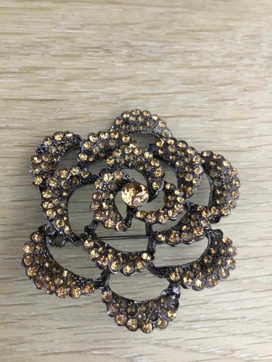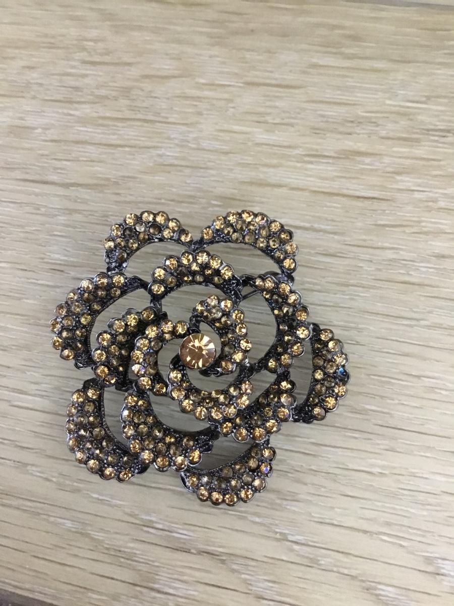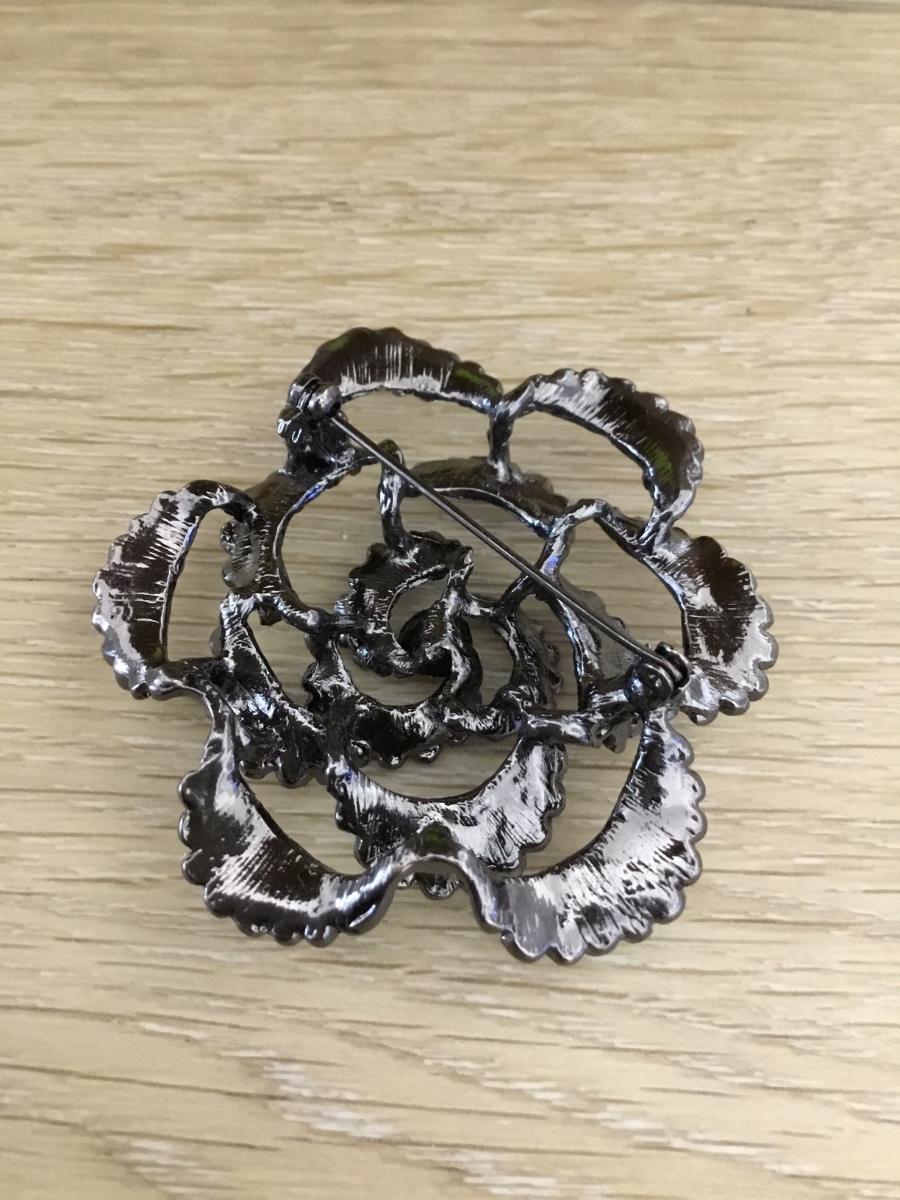 Silver tone flower rhinestone pin