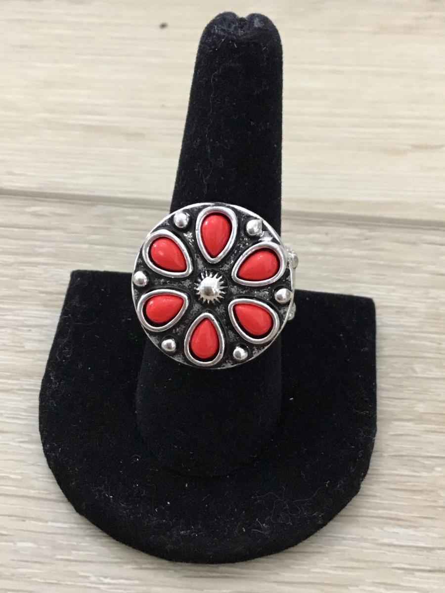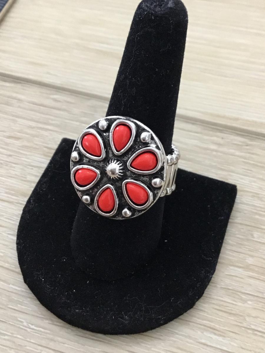 Silver tone flower stretchy costume ring