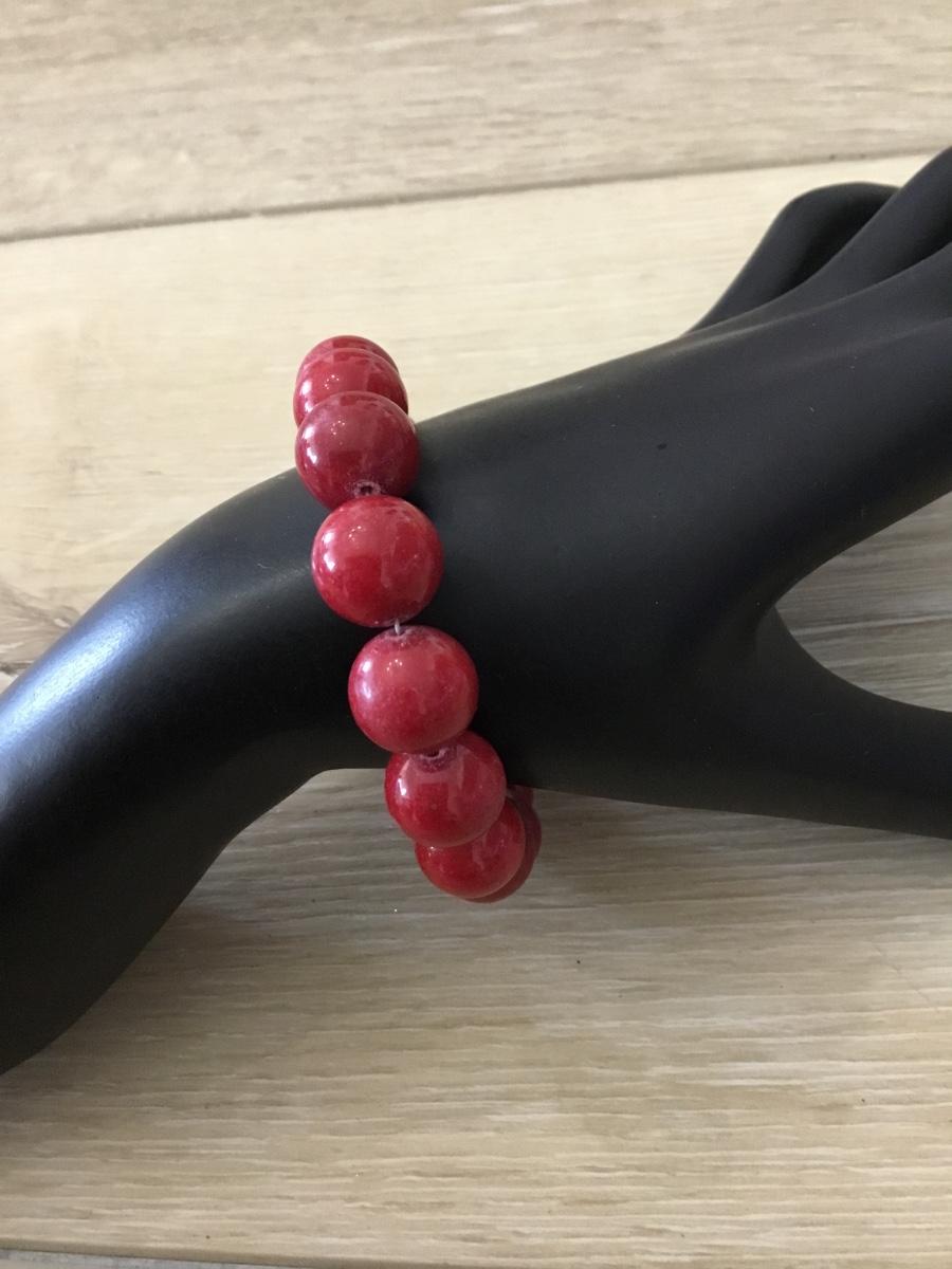 Silver tone glass red beaded bracelet
