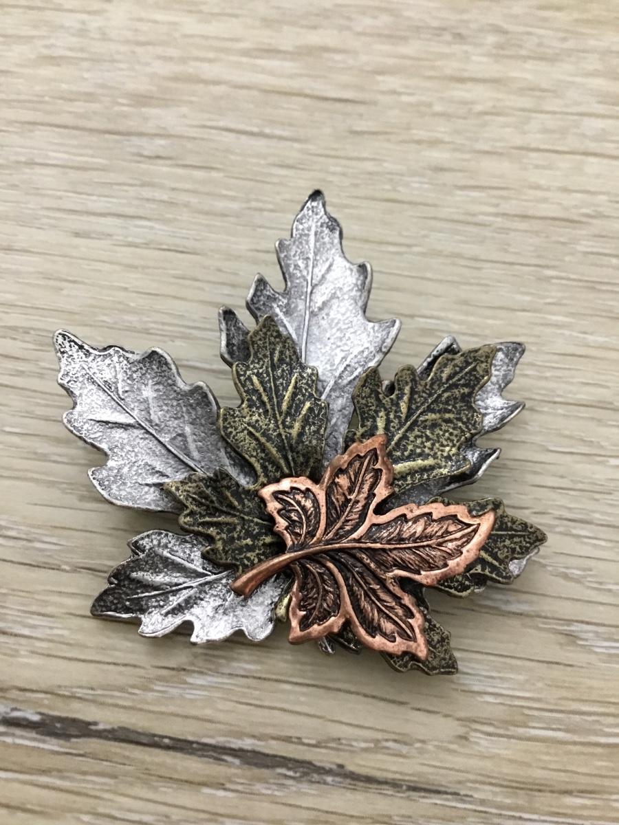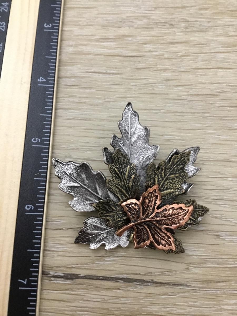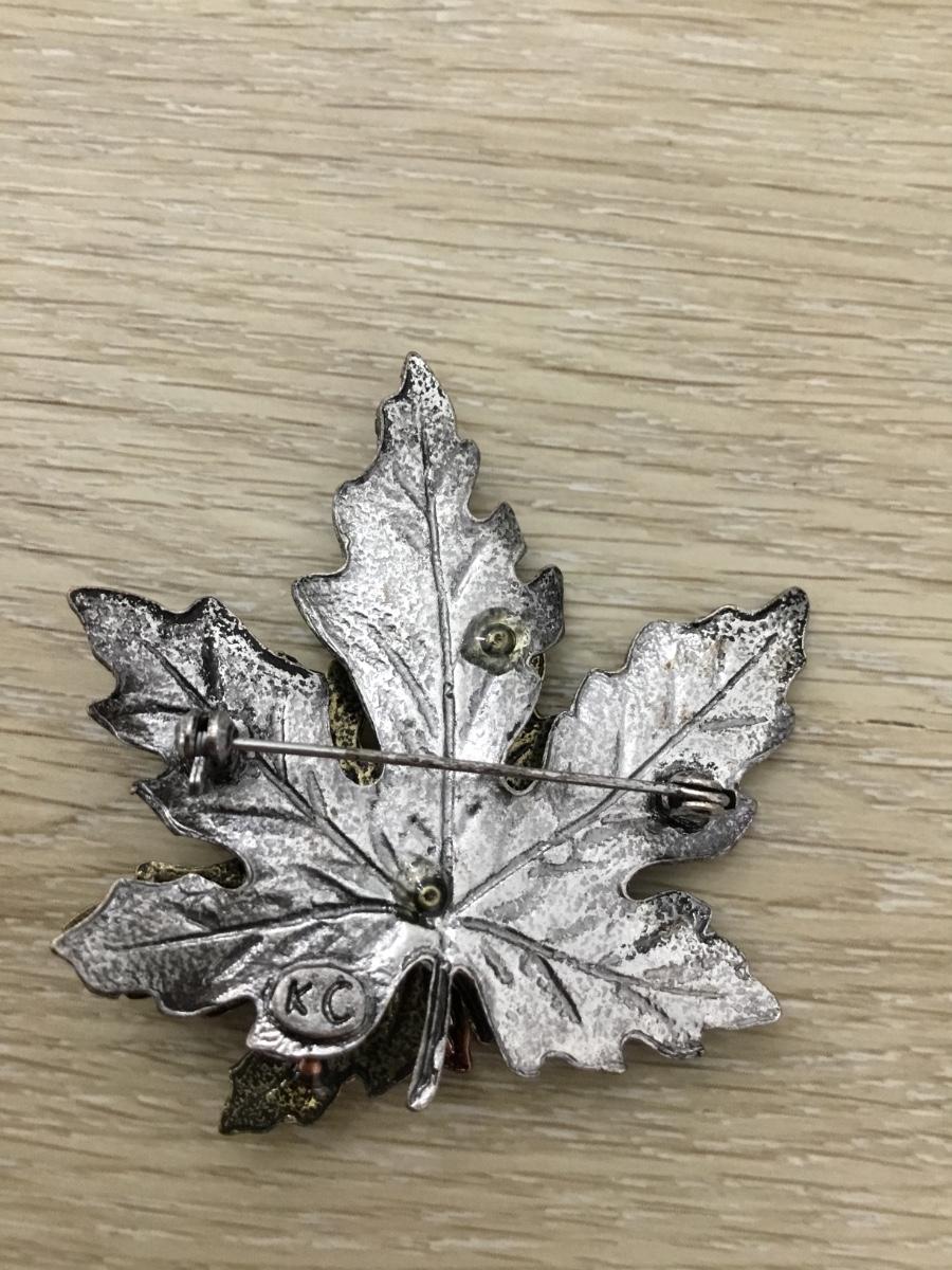 Silver tone, gold tone, bronze tone leaf KC marked pin