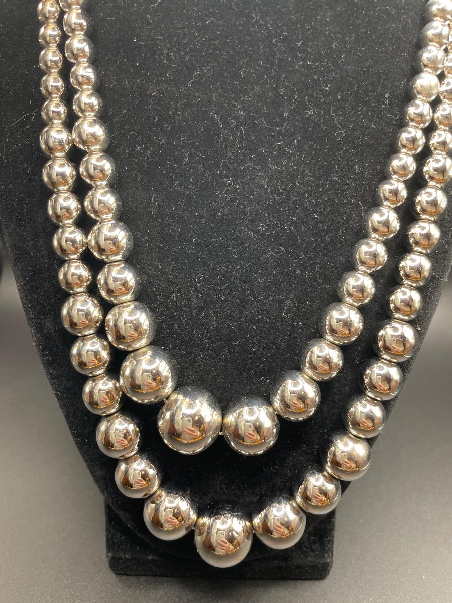 Silver tone graduated ball necklaces