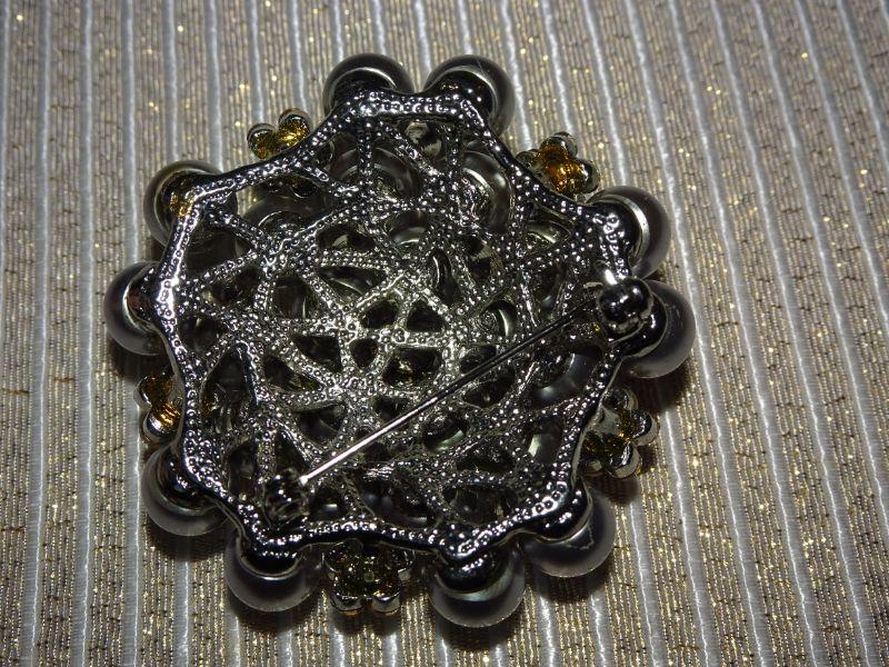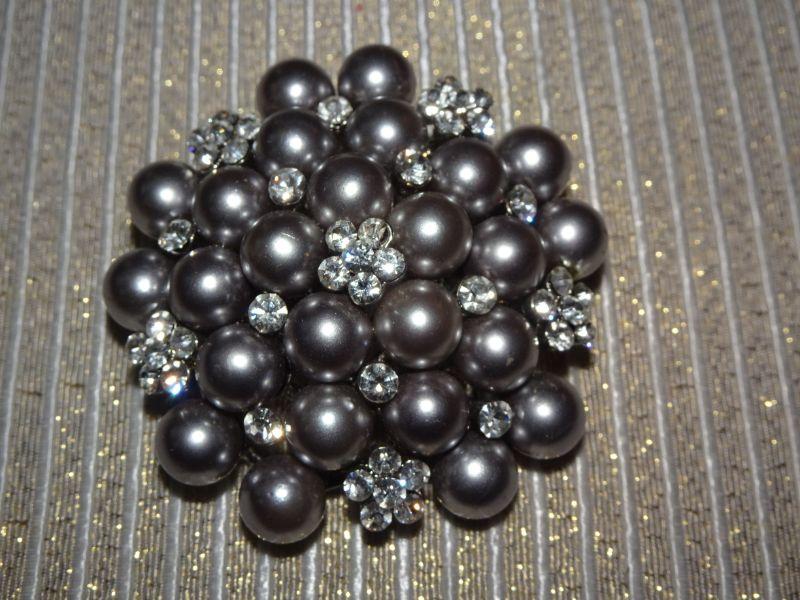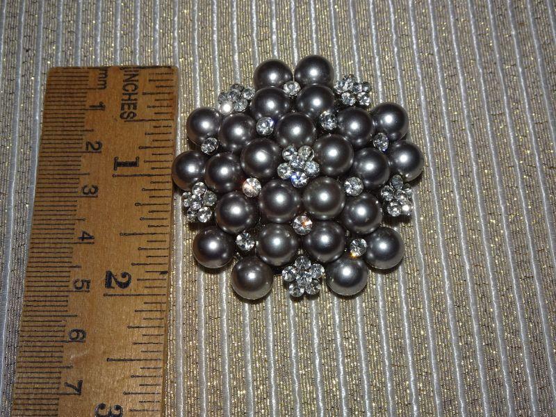 Silver Tone Gray Pearl & Rhinestone Cluster Brooch