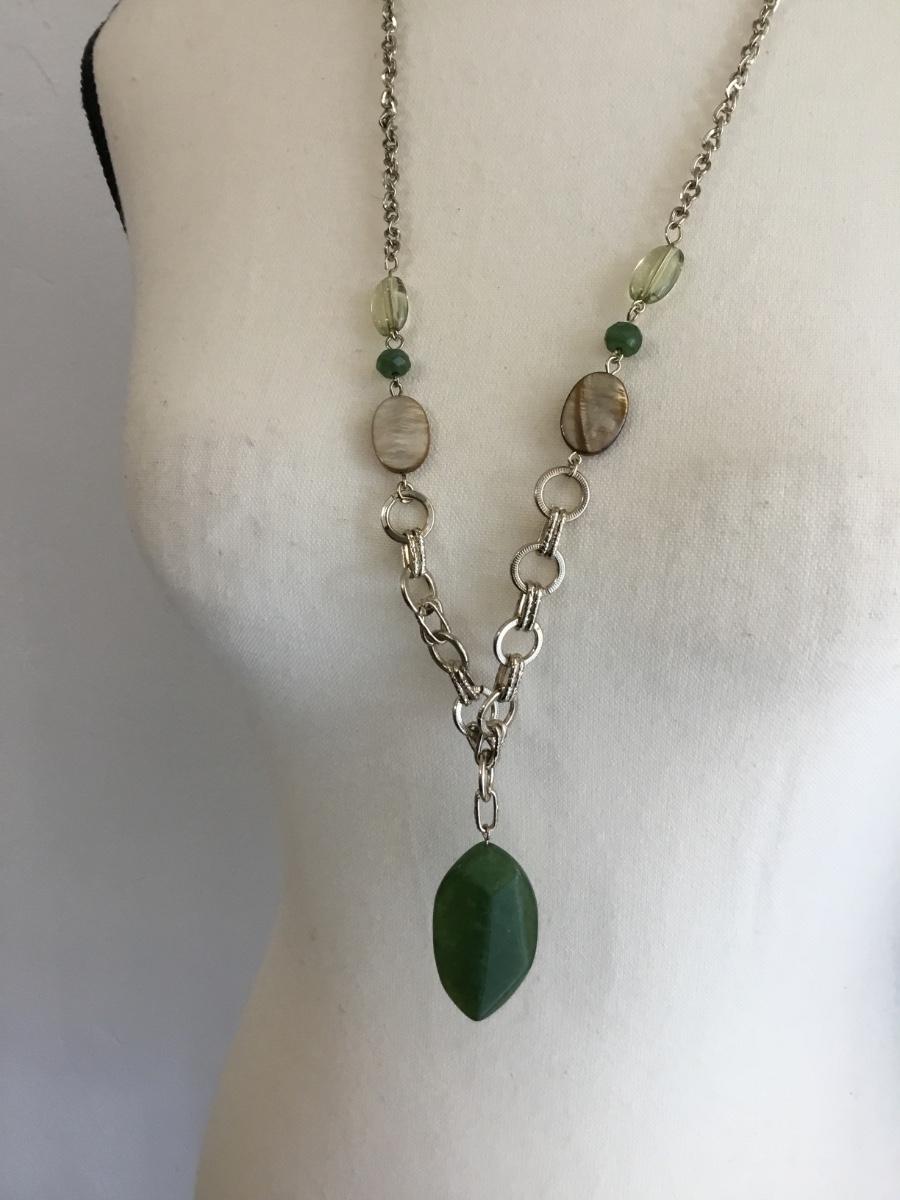 Silver tone green fashion necklace