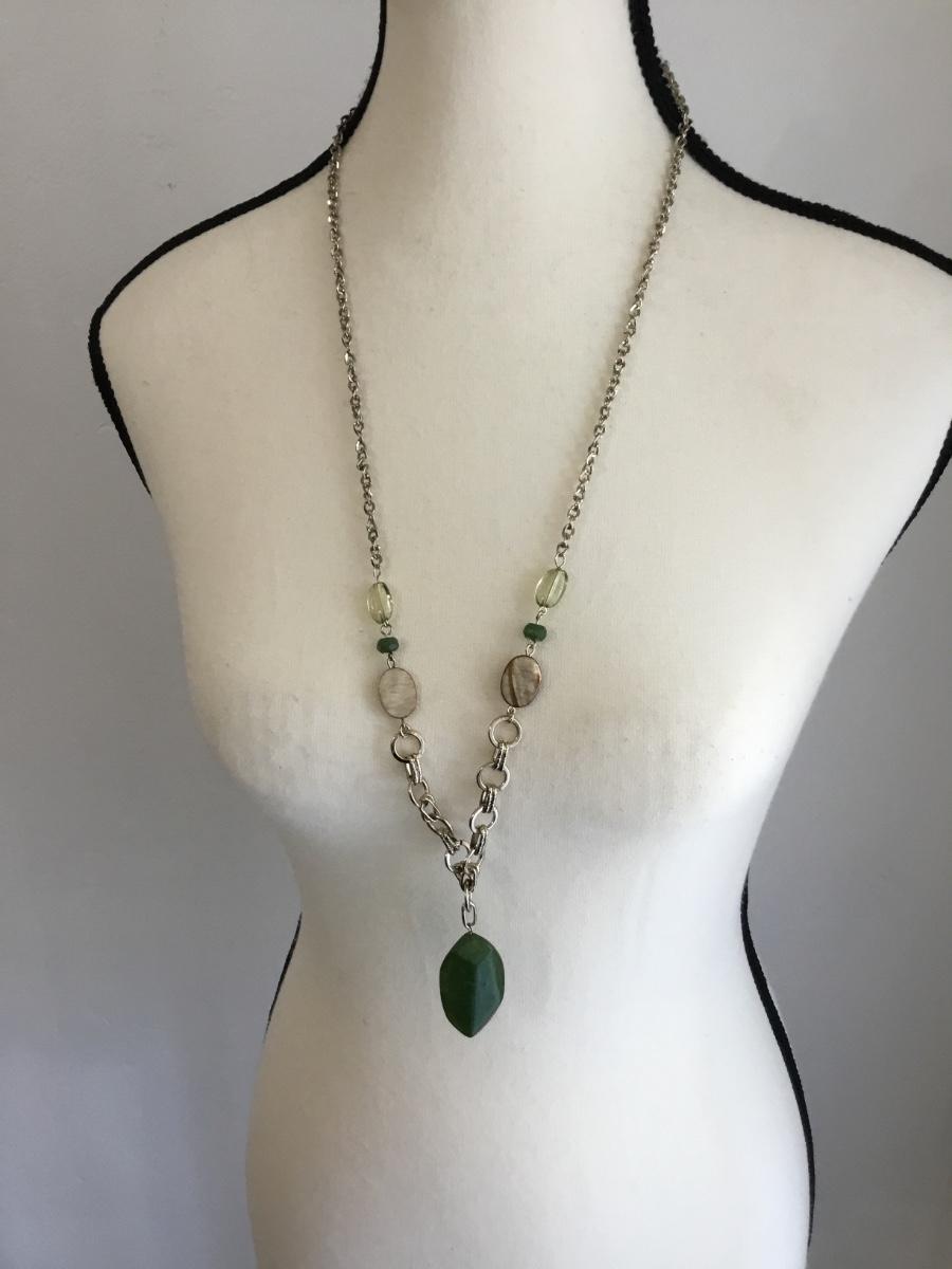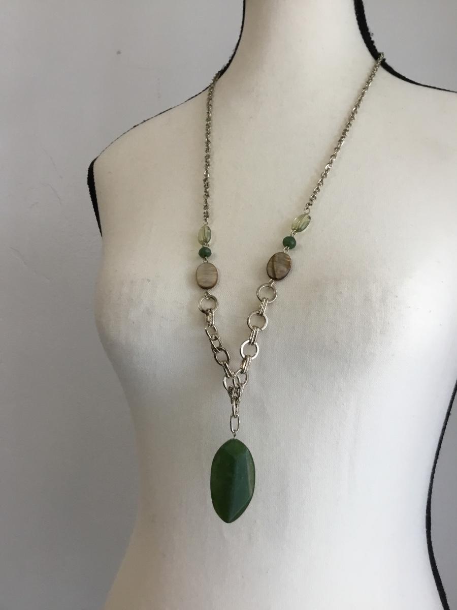 Silver tone green fashion necklace