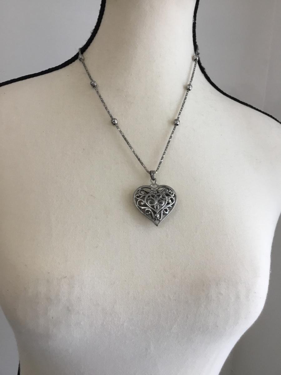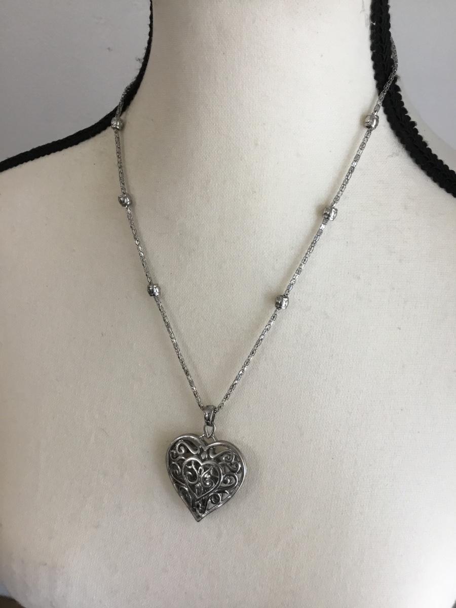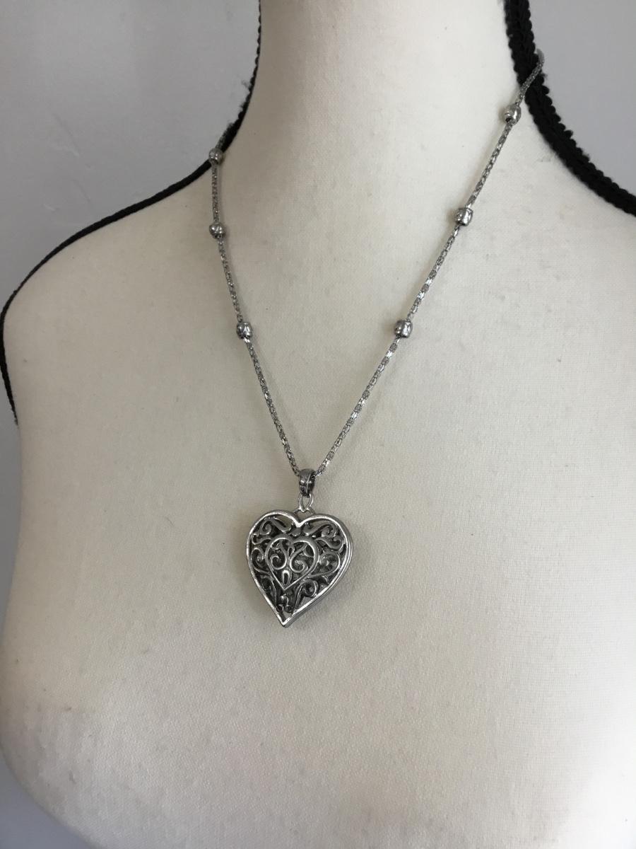 Silver tone heart pendant necklace