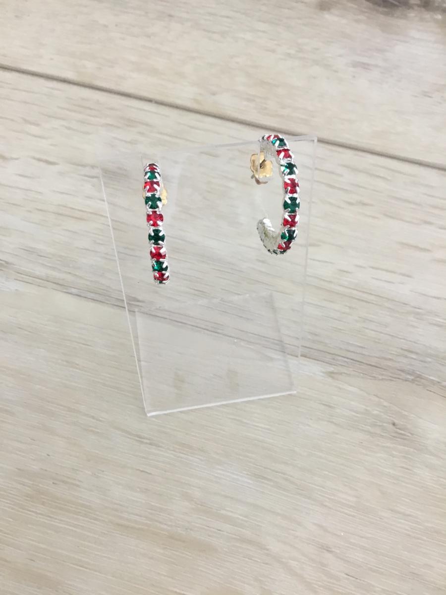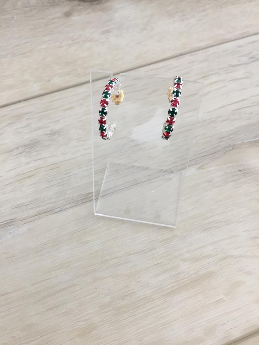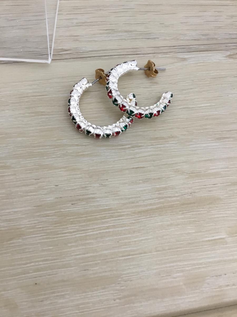 Silver tone hoop Christmas earrings