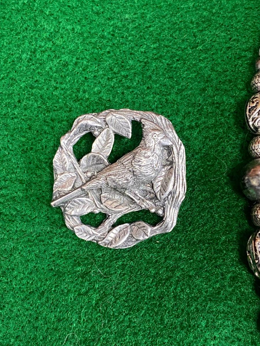 Silver Tone Jewelry Lot Necklaces Crystals Brooches Ring. Good condition. The bird pin is marked Birds and Blooms, no other pieces are marked.