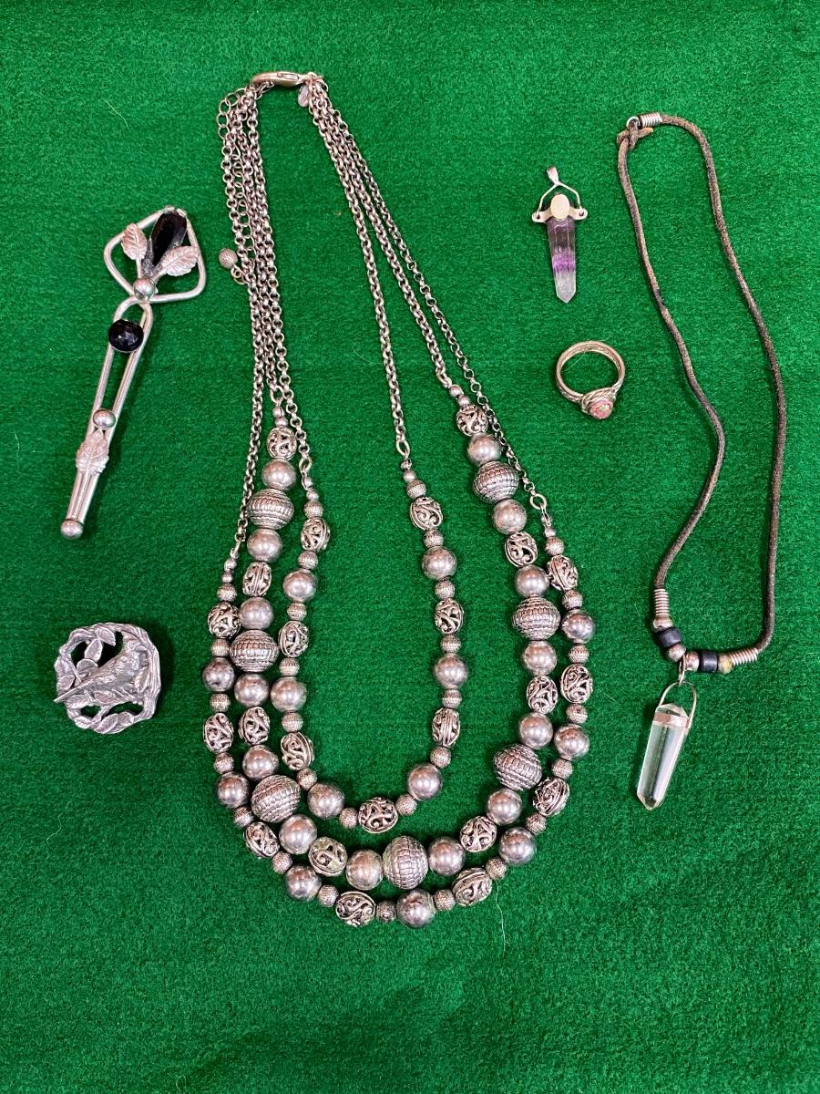 Silver Tone Jewelry Lot Necklaces Crystals Brooches Ring