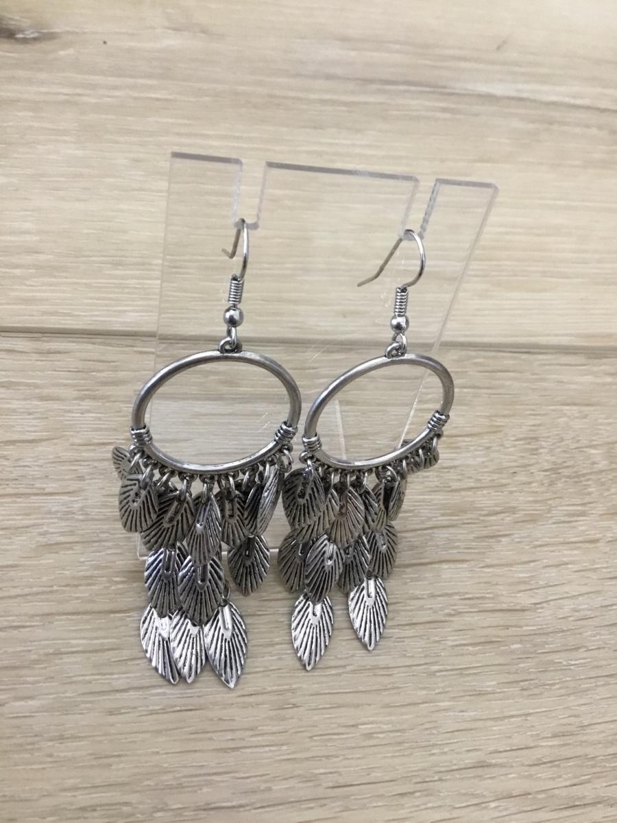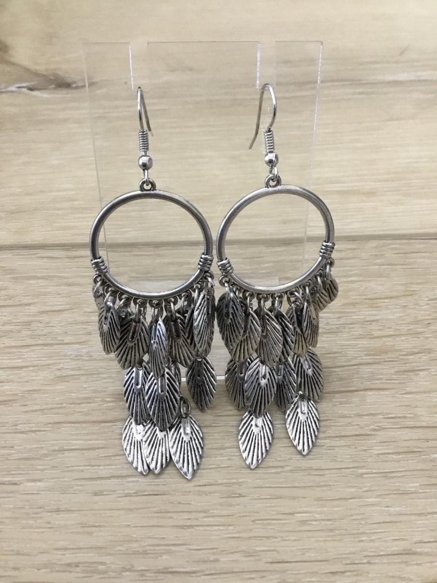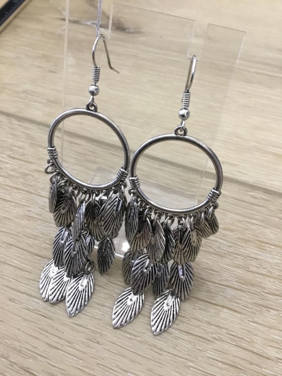 Silver tone leaf dangle earrings