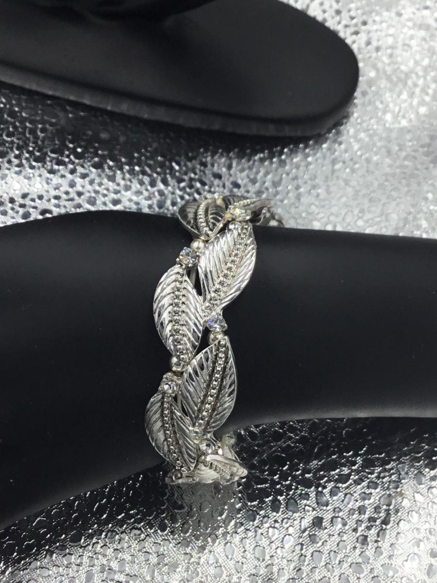 Silver tone leaf stretchy bracelet