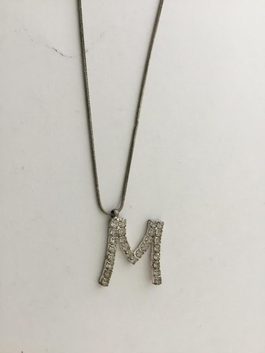 Silver tone letter M charm necklace