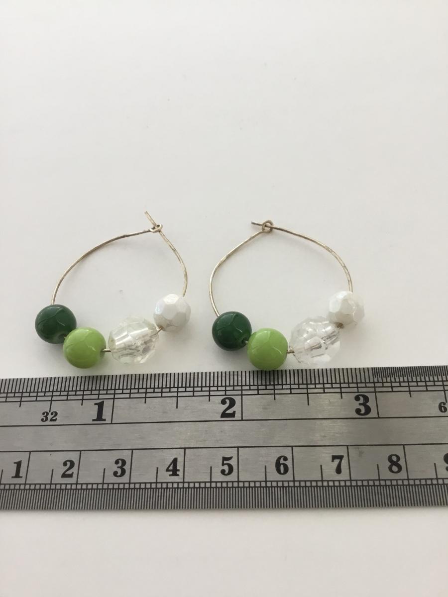 Silver tone light green hoop earrings