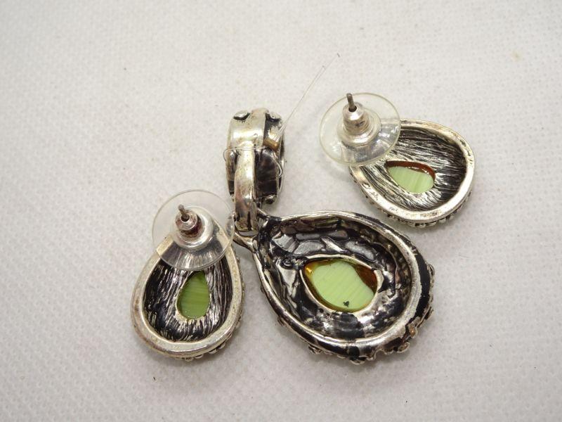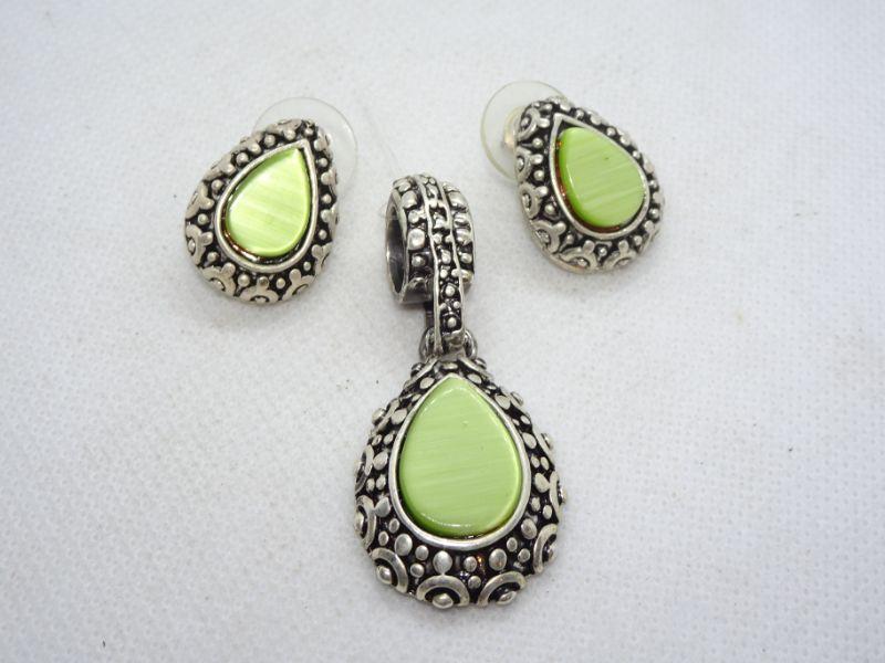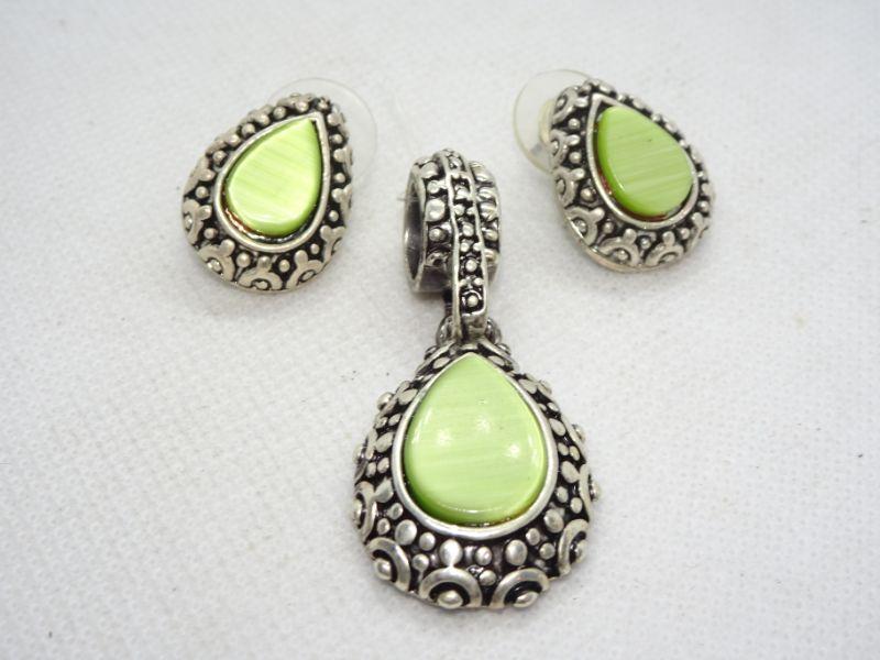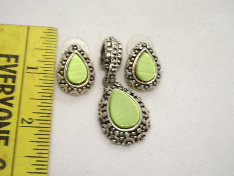 Silver Tone, Lime Green Pendant & Post Earring Set