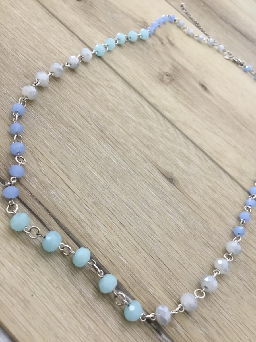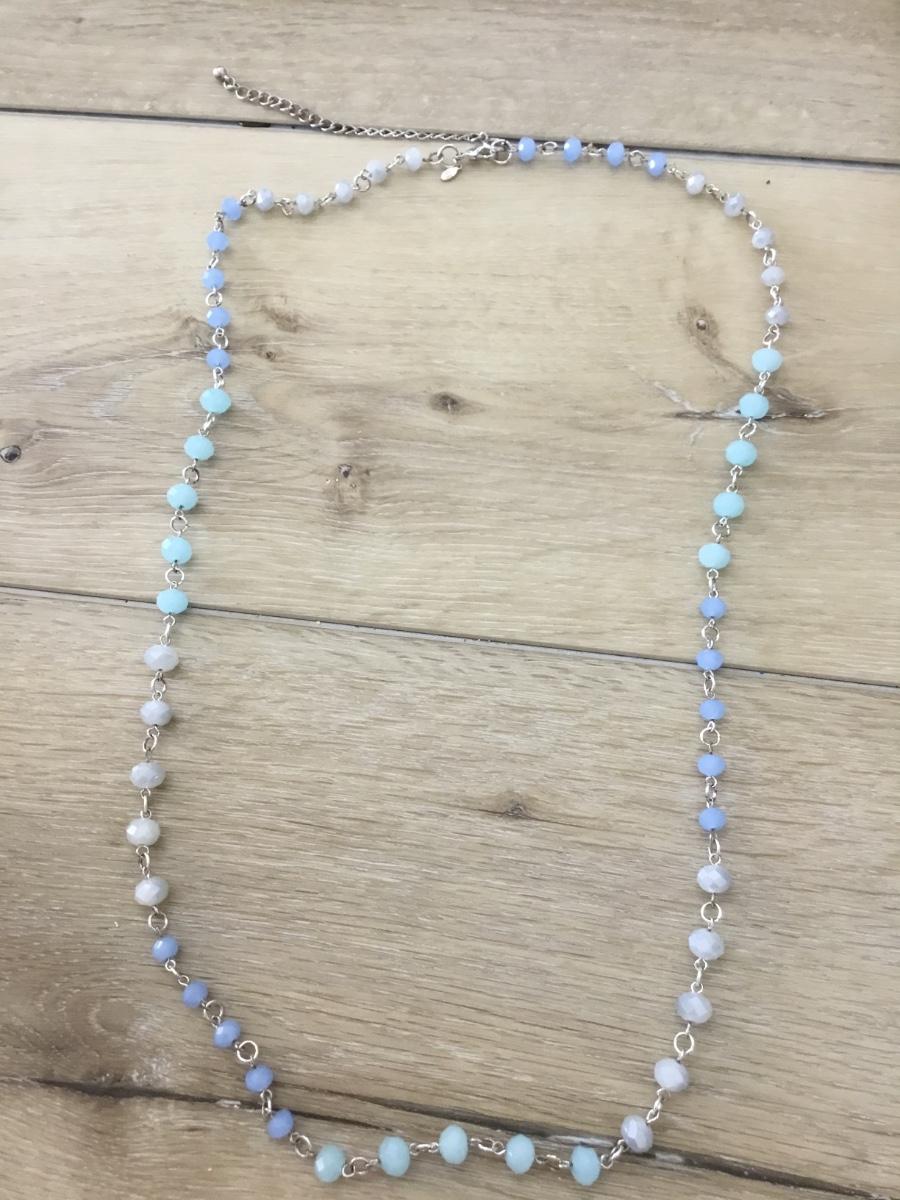 Silver tone marked blue colored beaded long necklace