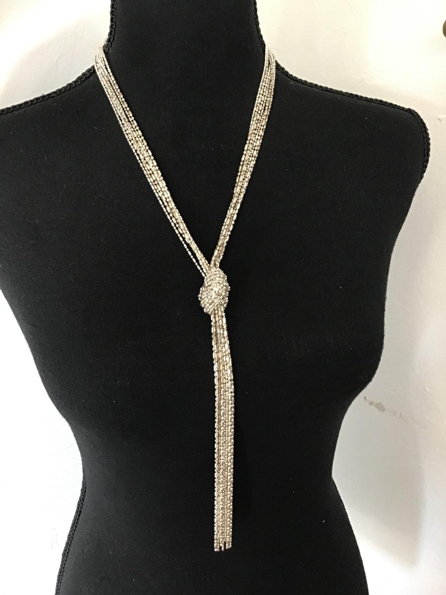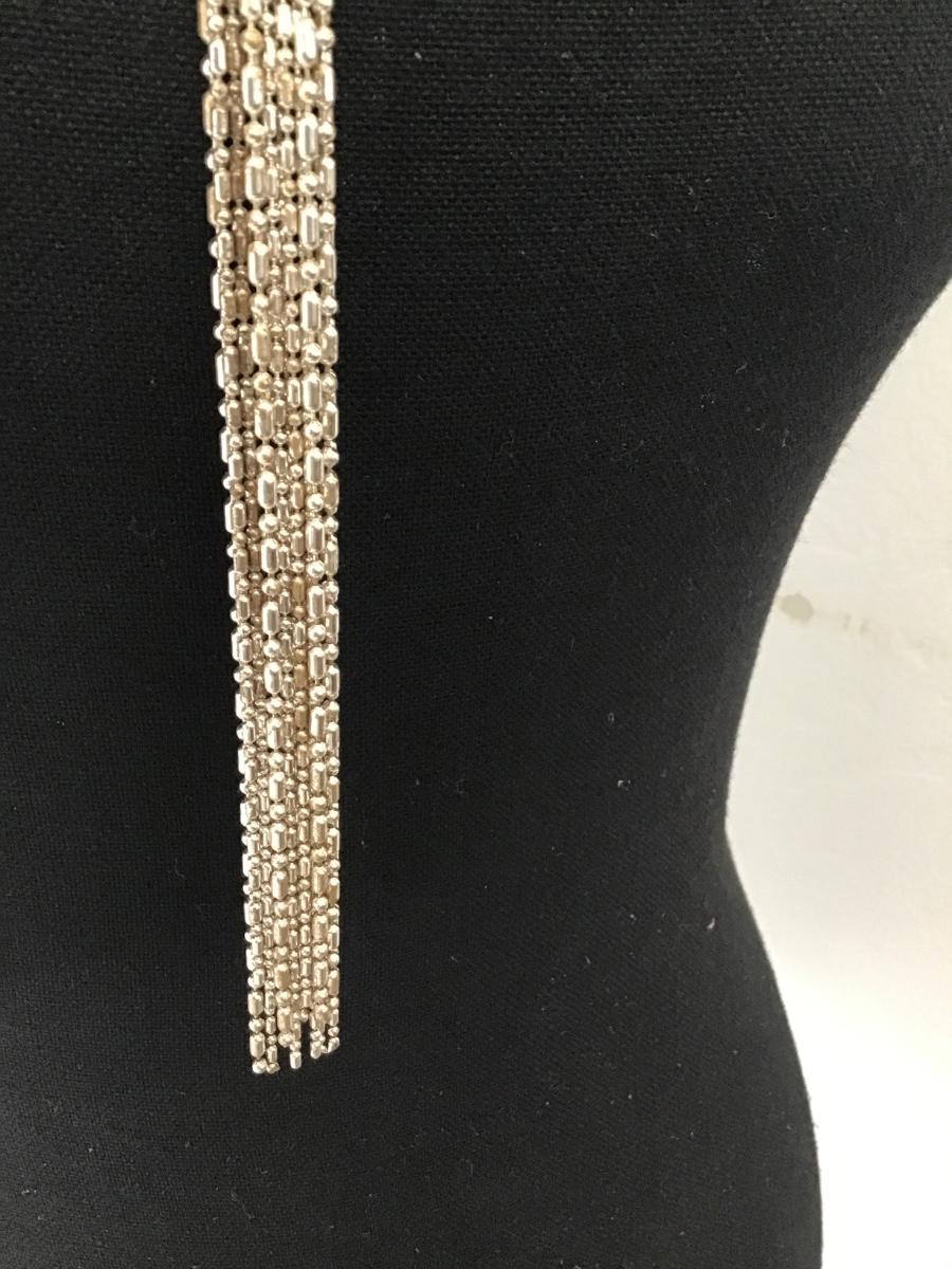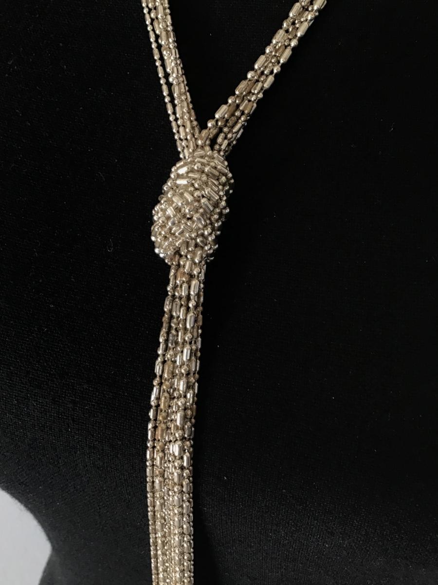 Silver Tone Metal Bead Tassel Necklace