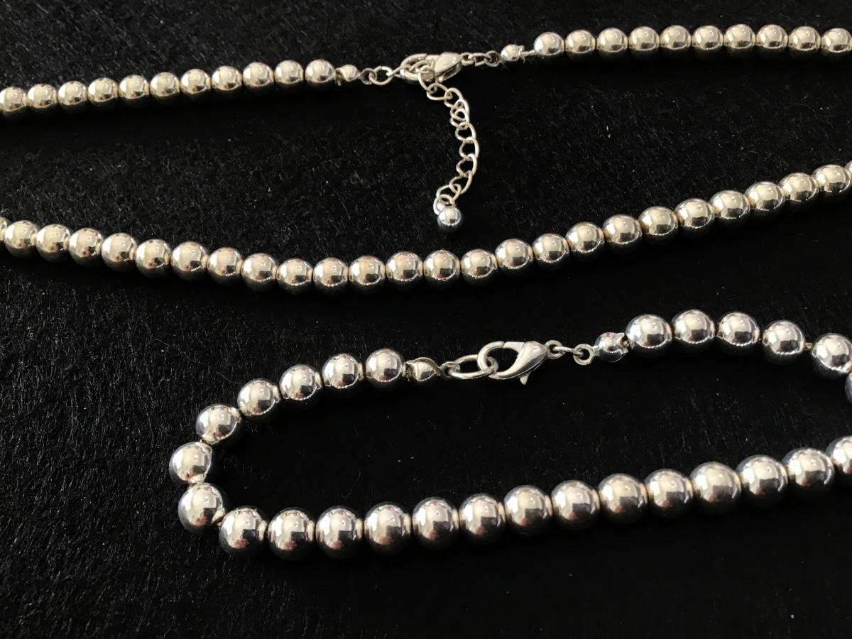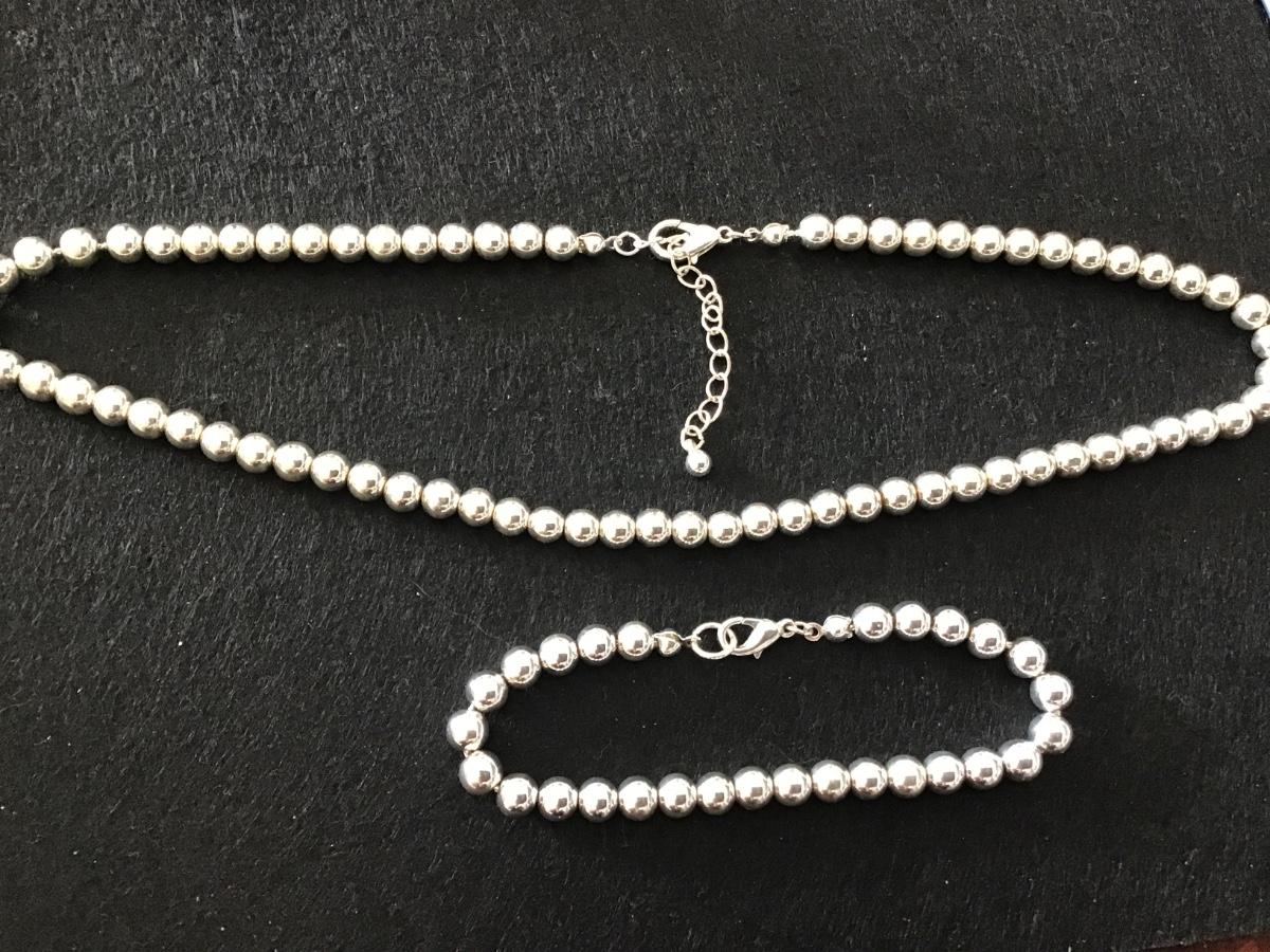 Silver Tone Metal Beaded Necklace with Bracelet