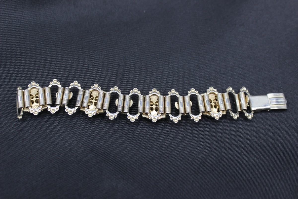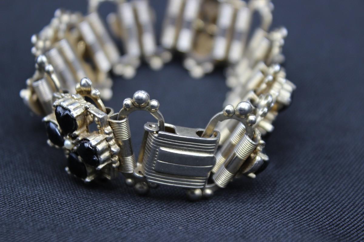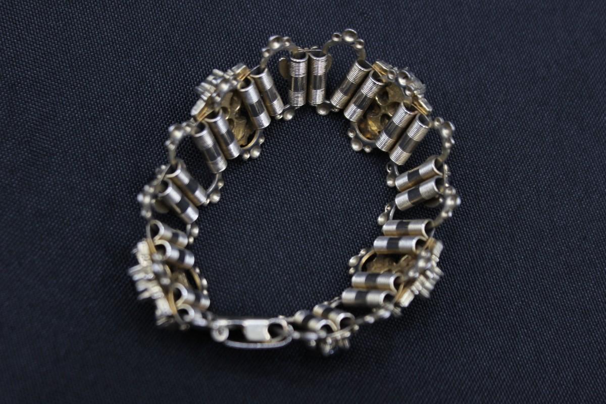 Silver Tone Metal Fashion Bracelet. Small hart design on the links. Unmarked.