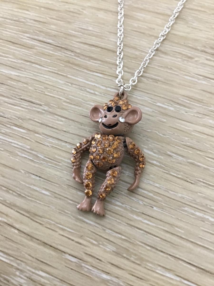 Silver tone monkey charm necklace